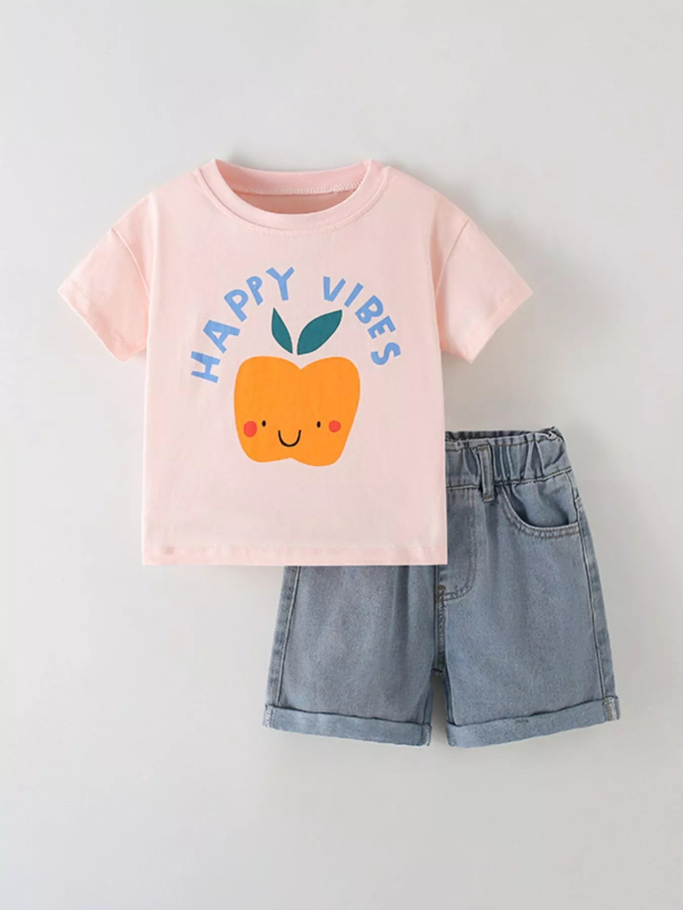 Children's Happy Vibes Graphic Tee & Denim Shorts Set