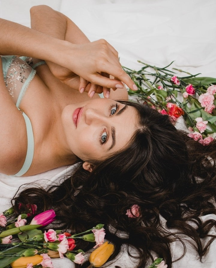 Feminine balconette bra with a tattoo effect in a flattering tulip cut by Samanta Lingerie. The decorative detail on the front adds a stylish touch. The cups ensure a perfect lift for your breasts. Perfect for a feminine cleavage, no matter your cup size. Emerald green embroidery with an edgy tattoo effect! This bra does have two shoulder straps, as well as the V-Shaped center arrangement, which is also removable.