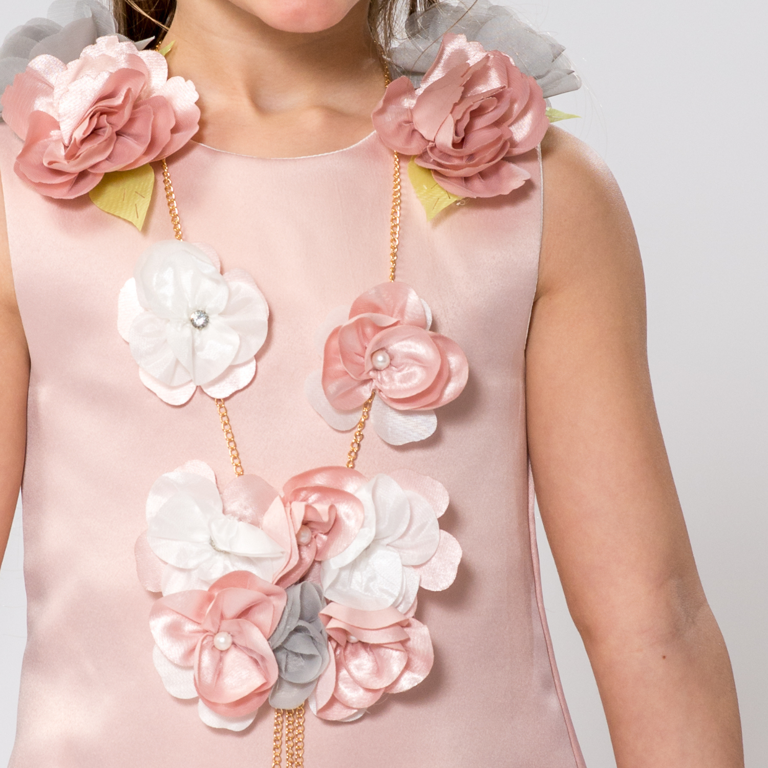 Elevate your little princess's style with our sleeveless shiny satin dress. Crafted from luxurious satin fabric, this enchanting dress features a fluffy tulle bottom edge and a soft cotton lining.