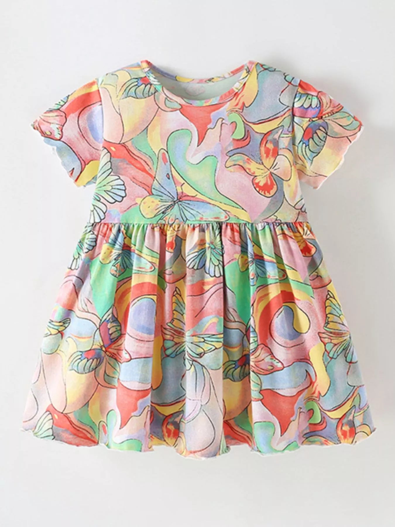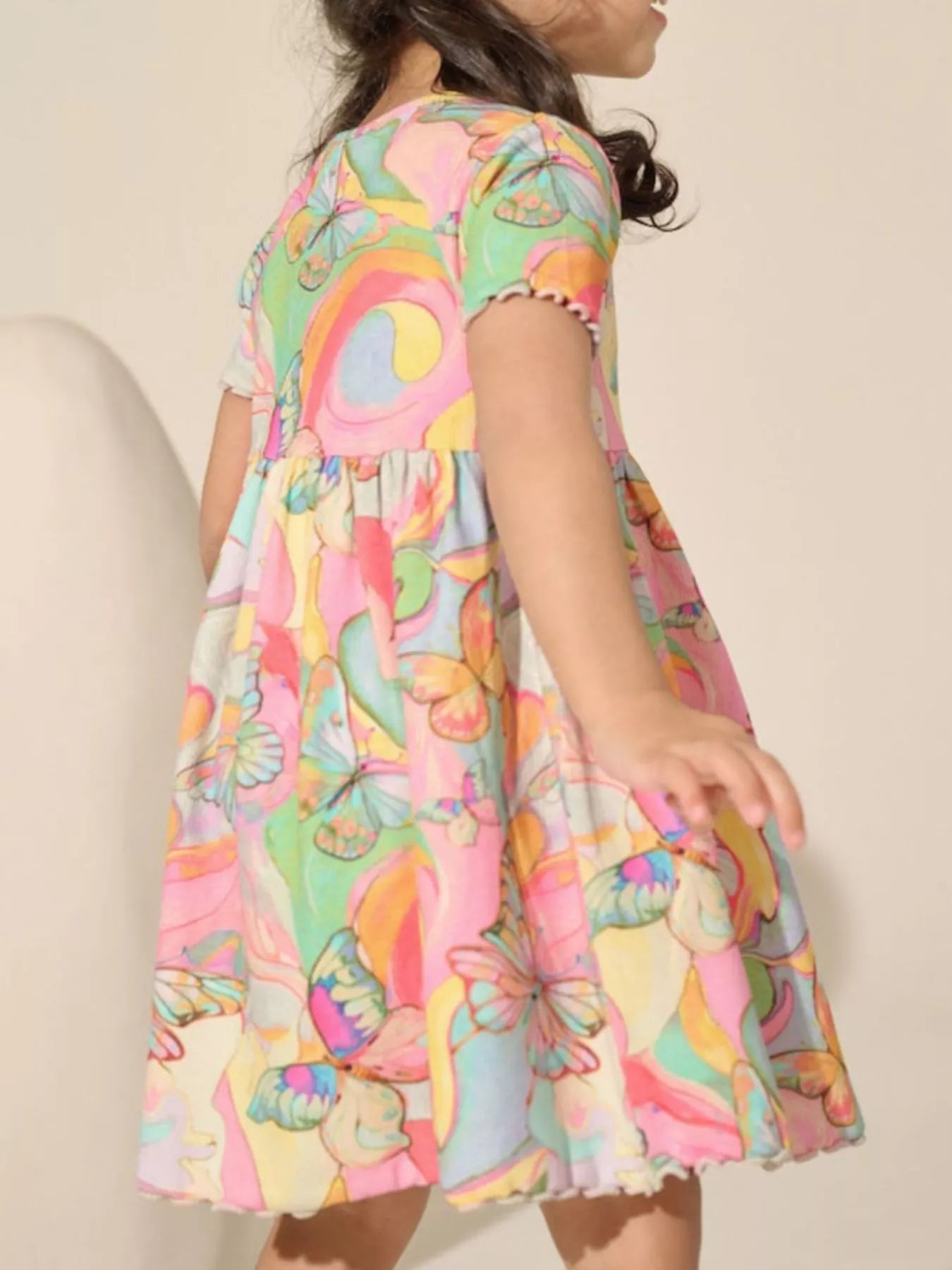Children's Butterfly Print Short Sleeve Dress