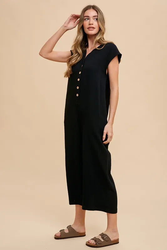 Annie Wear Button Detail Wide Leg Jumpsuit with Pockets