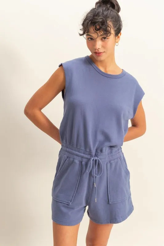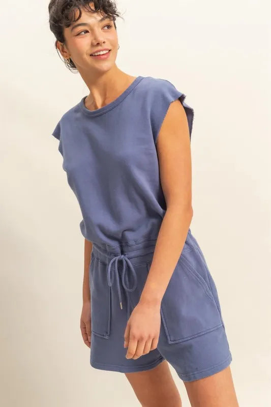 HYFVE Round Neck Cap Sleeve Drawstring Waist Romper