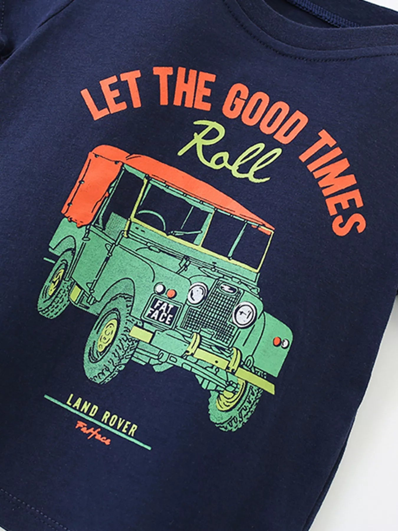 Children's Cartoon Graphic Tee & Camo Shorts Set