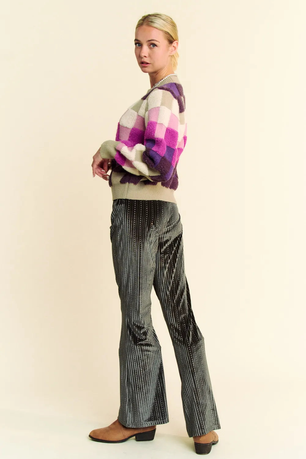 Davi & Dani Checkered Round Neck Long Sleeve Sweater