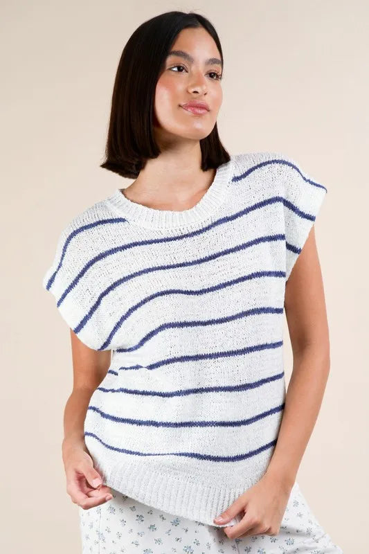 VERY J Striped Knit Sweater Vest Top