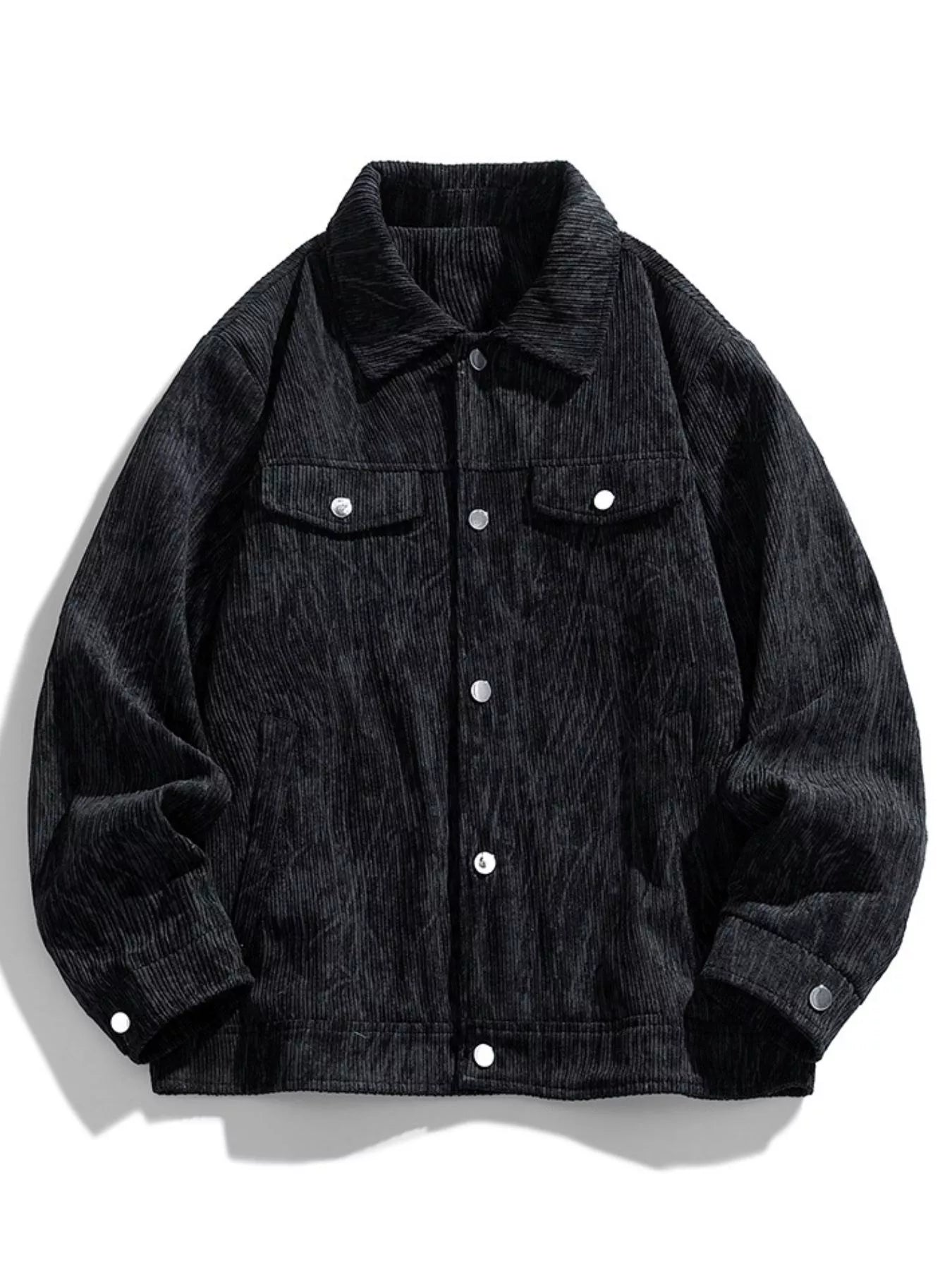 Men's Plus Size Corduroy Button-Down Casual Jacket