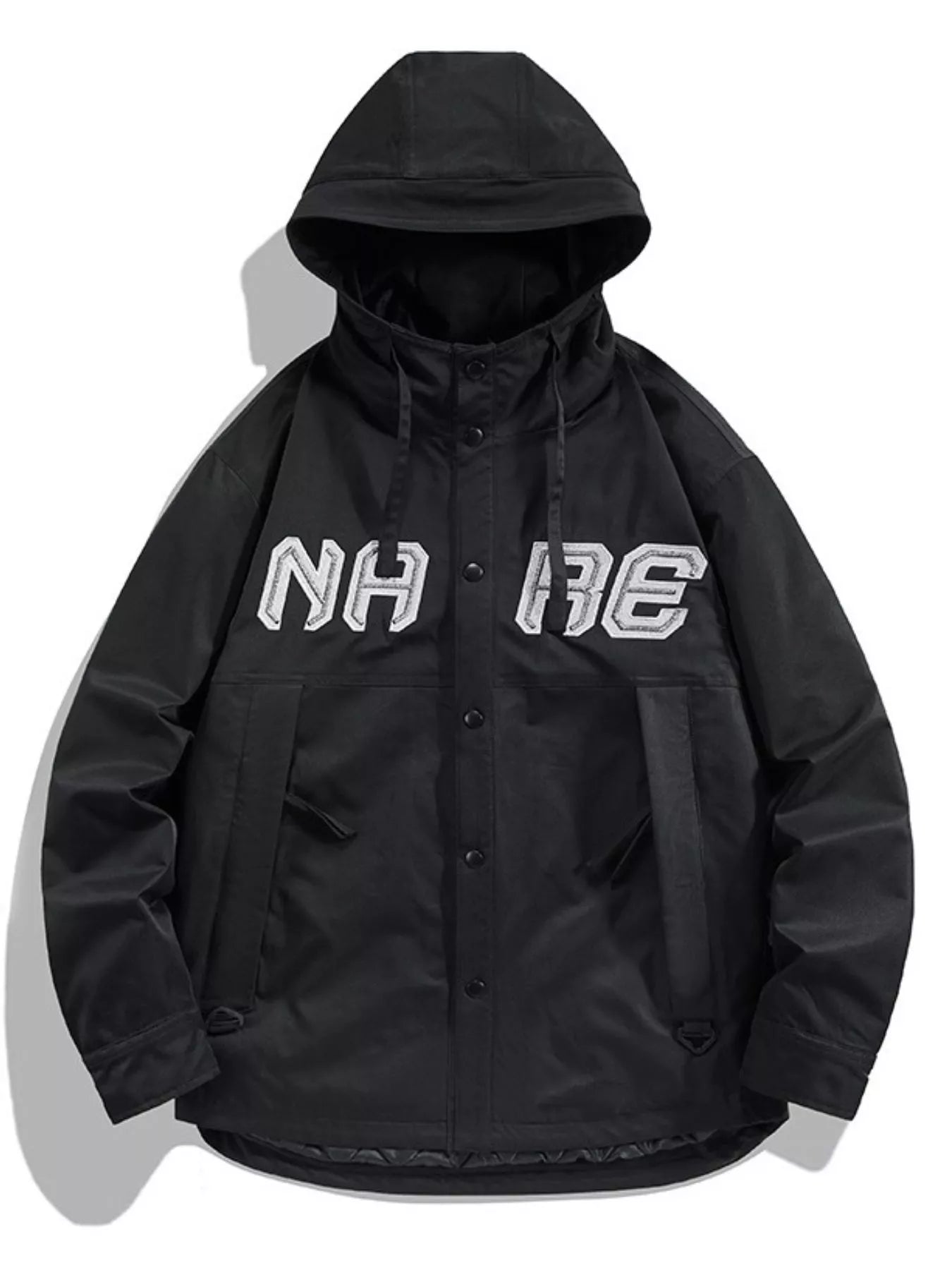 Men's Plus Size Snap Down Long Sleeve Hooded Jacket