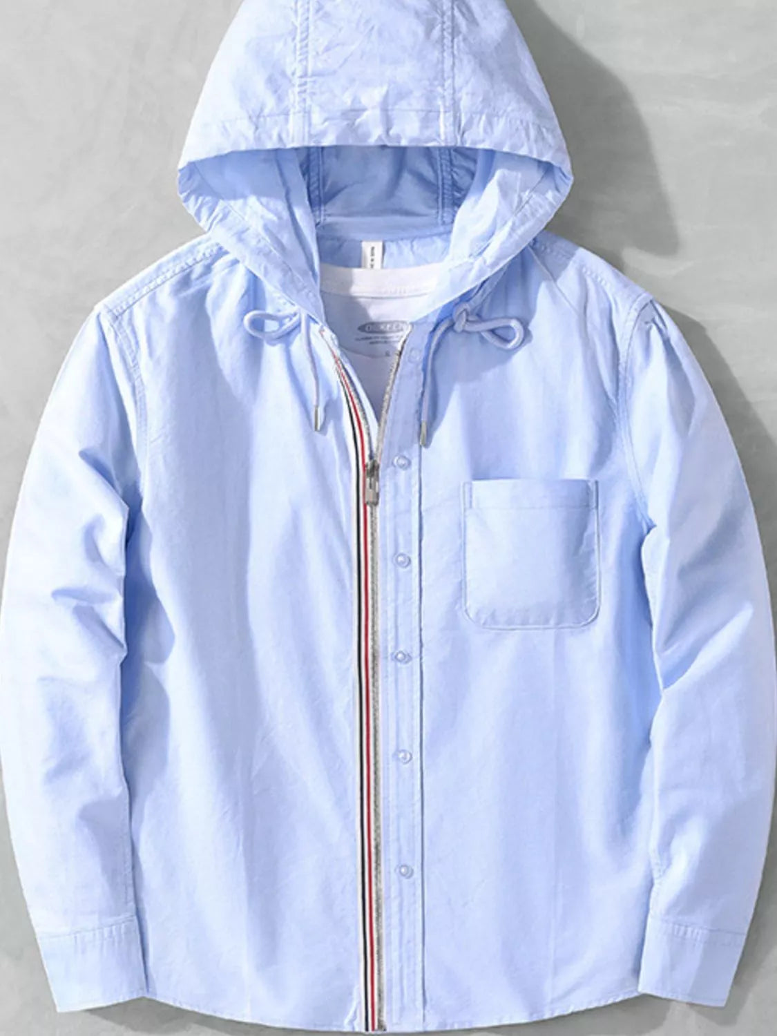 Men's Plus Size Striped Trim Hooded Casual Shacket