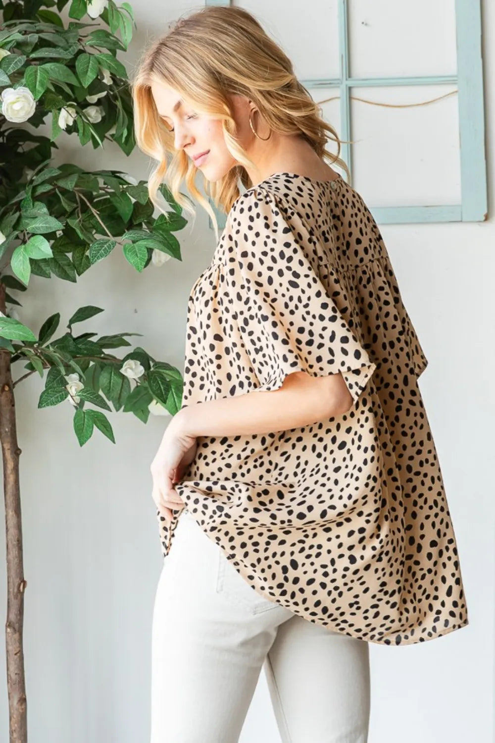 Heimish Full Size Animal Print Flutter Sleeve Blouse