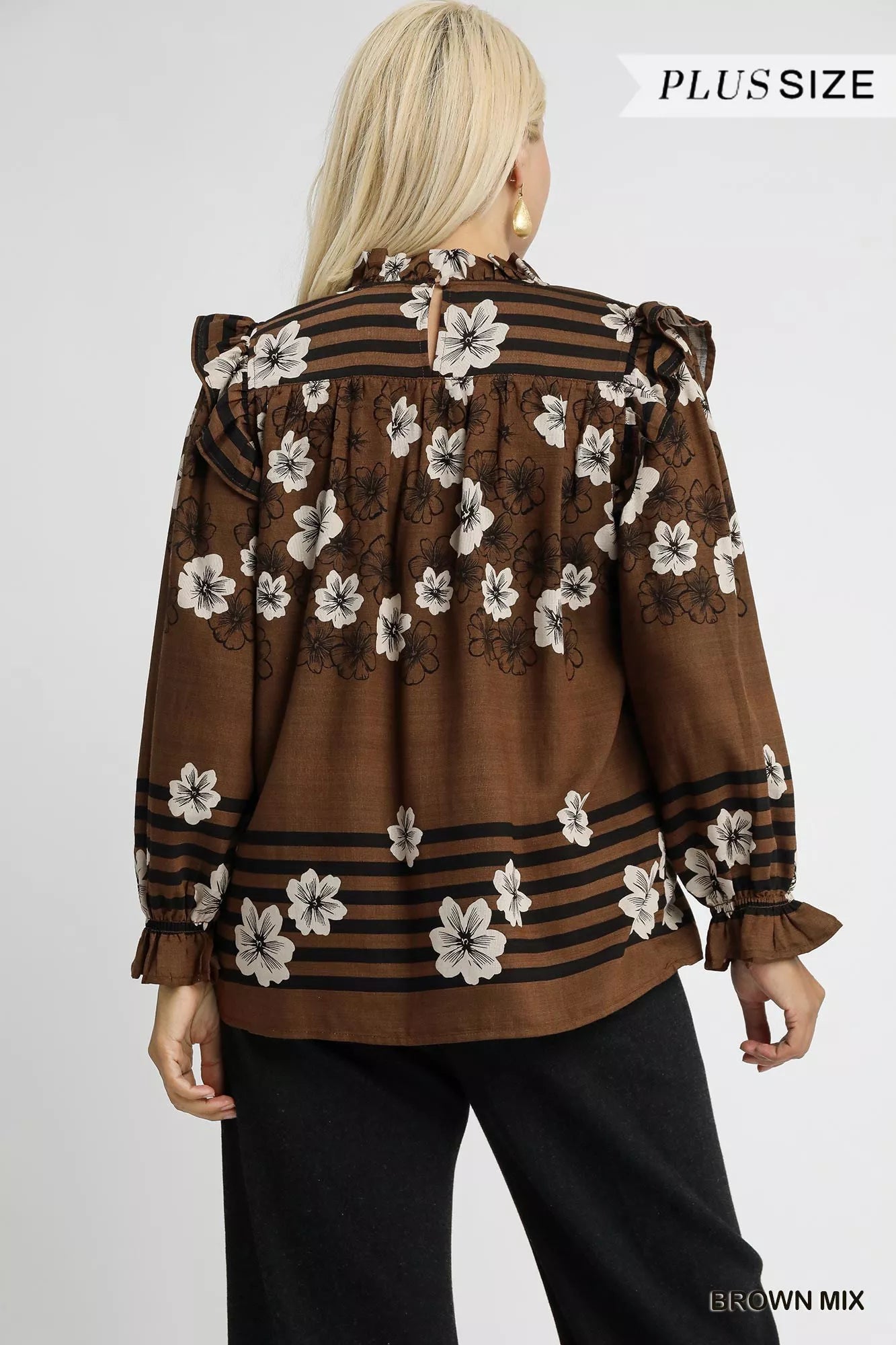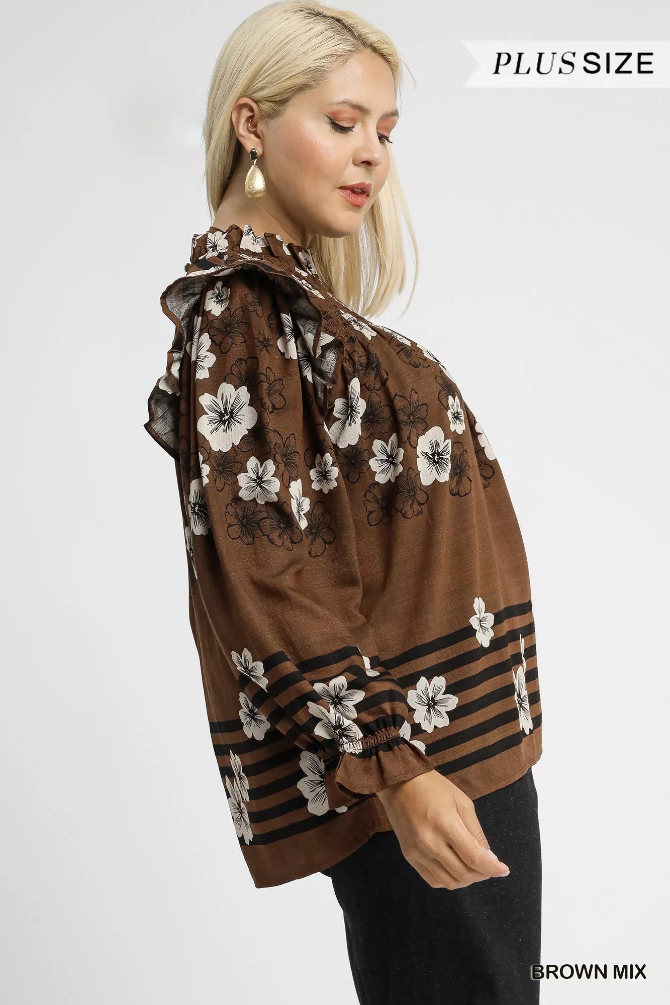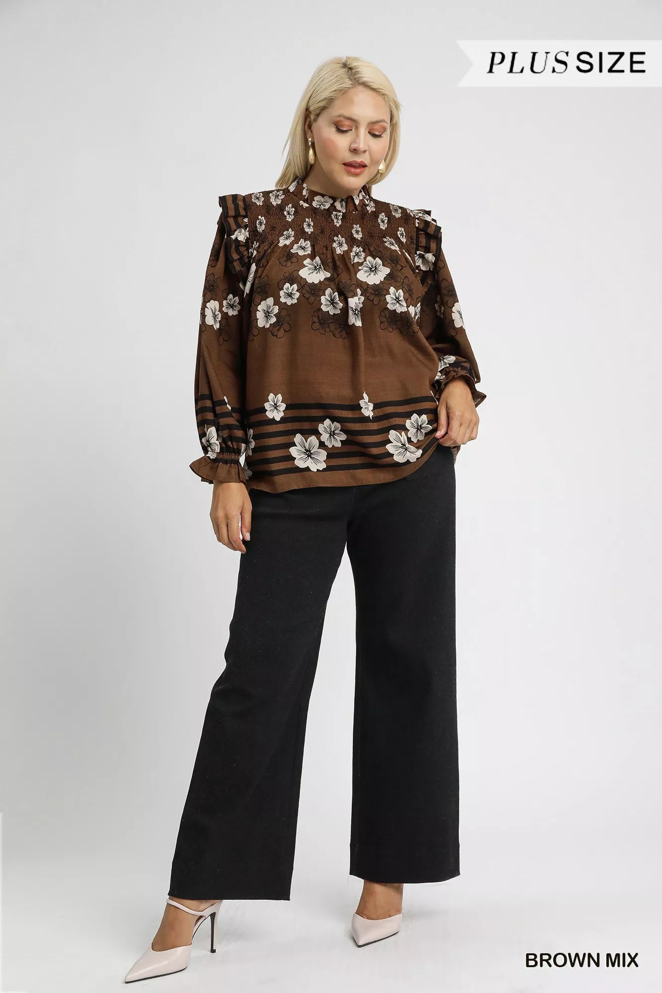 Umgee Full Size Mix Floral Smocked Ruffle Blouse Plus Size