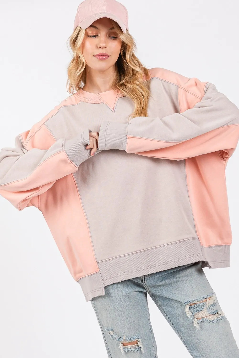 SAGE + FIG Color Block Round Neck Sweatshirt