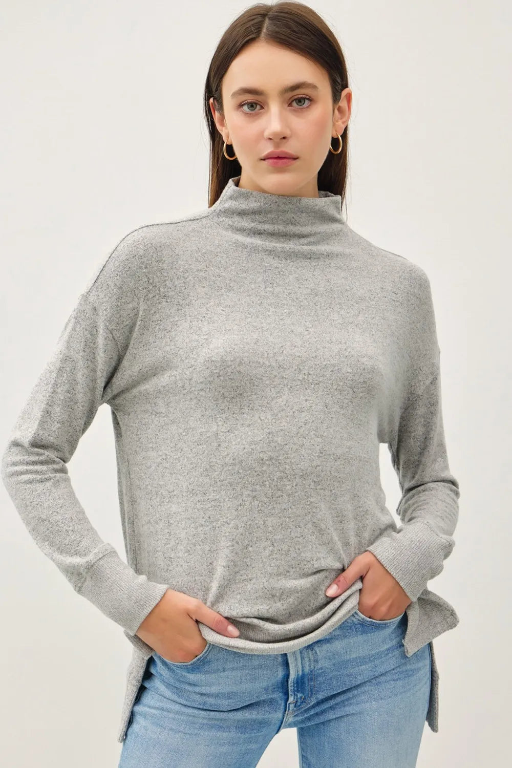 Be Cool Side Slit Mock Neck Long Sleeve Tunic Top