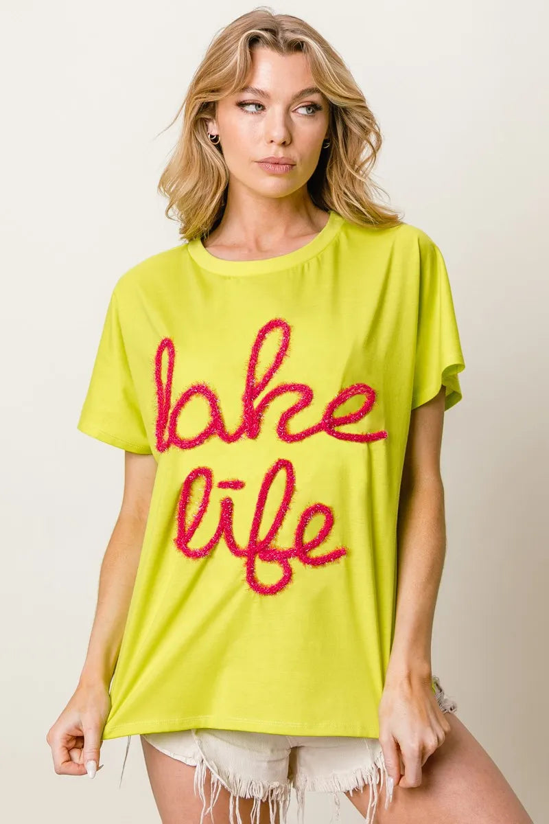 BiBi Metallic Letter Short Dolman Sleeve Top