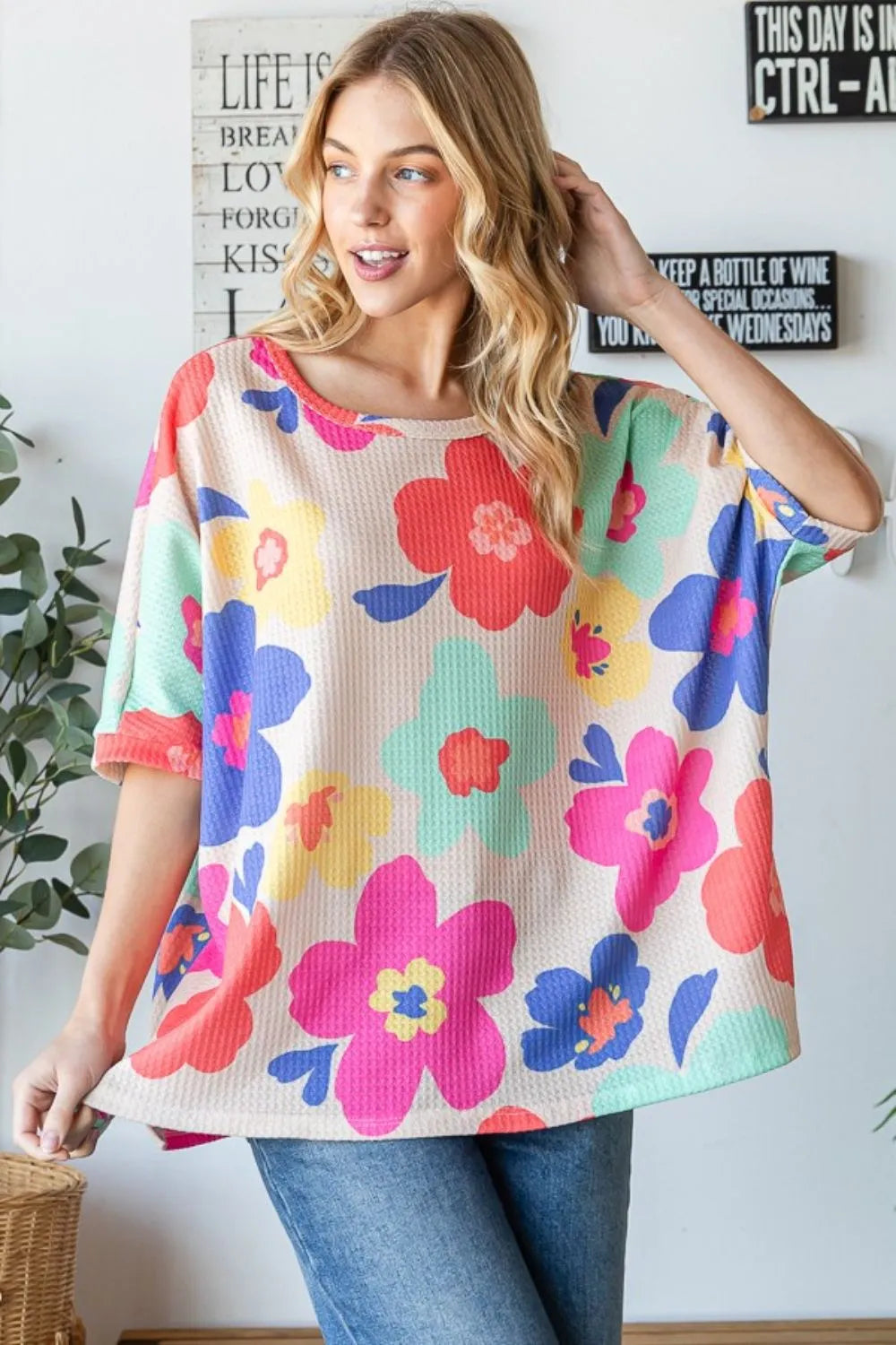The floral waffle oversized T-shirt offers a stylish and comfortable option for a casual look. The floral pattern adds a feminine touch to the classic waffle texture of the shirt. With its oversized fit, this T-shirt is perfect for a relaxed and effortless outfit. Pair it with your favorite jeans or shorts for a cute and on-trend ensemble. Embrace the laid-back yet chic style with this floral waffle oversized T-shirt. Add this versatile piece to your wardrobe for a casual and trendy option that is both comfortable and fashionable.