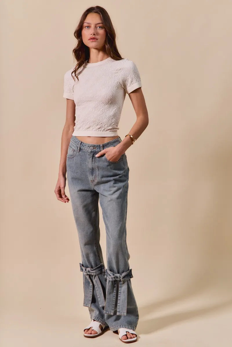 SO ME Floral Patterned Seamless Short Sleeve Top
