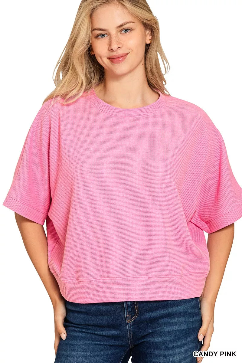 Zenana Double Knit Banded Bottom Short Sleeve Top