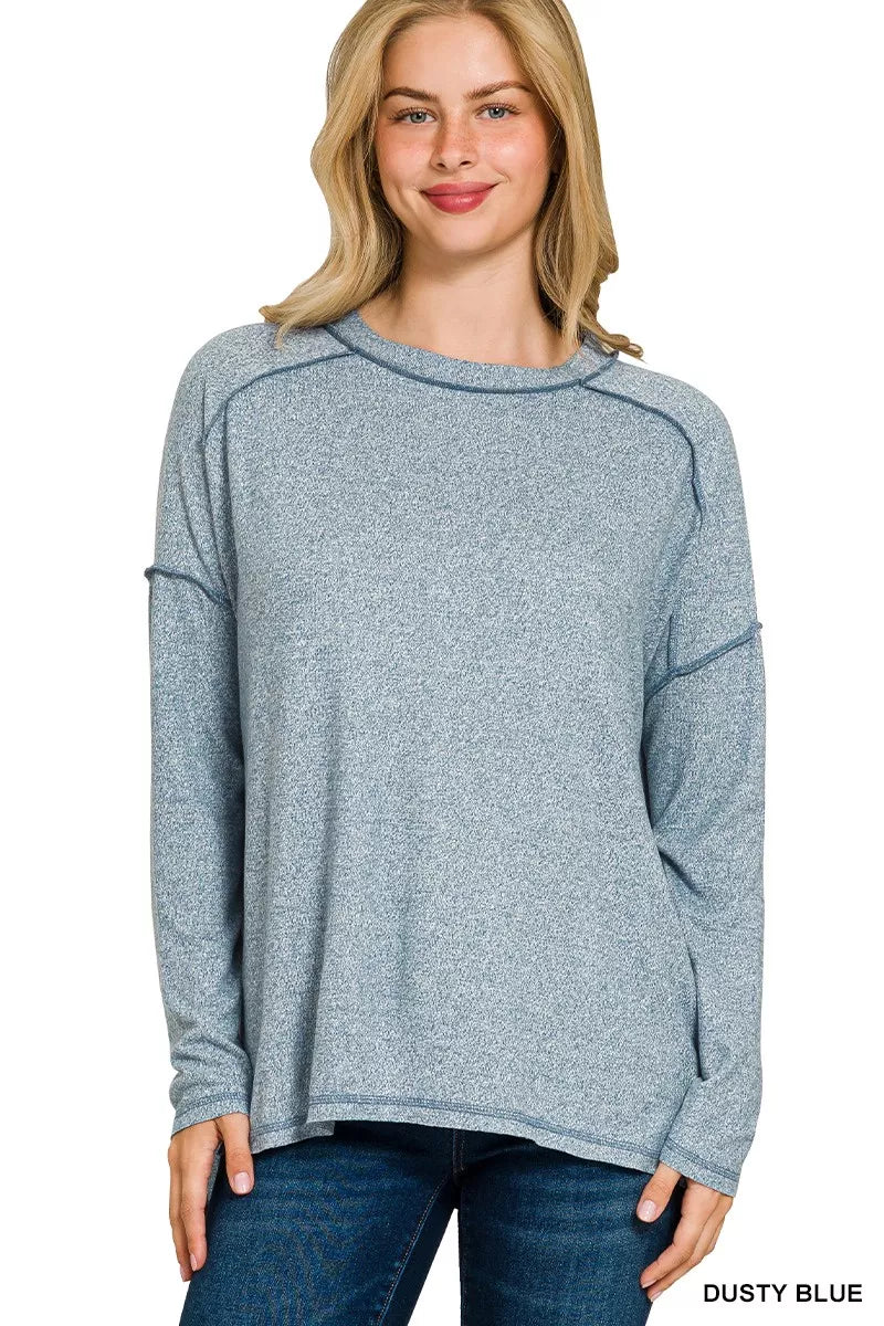 Zenana Full Size Melange Hacci Exposed Seam Hi-low Tee Plus Size