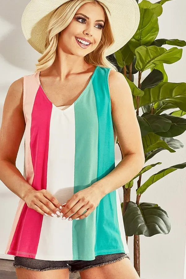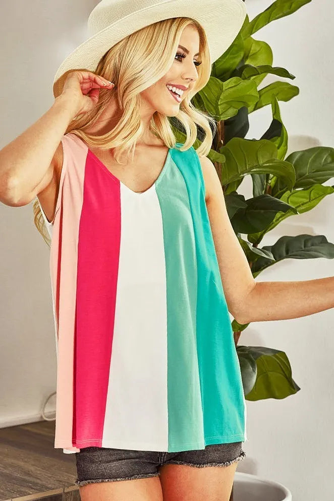 BiBi Cotton Span Knit Color Block Sleeveless Top