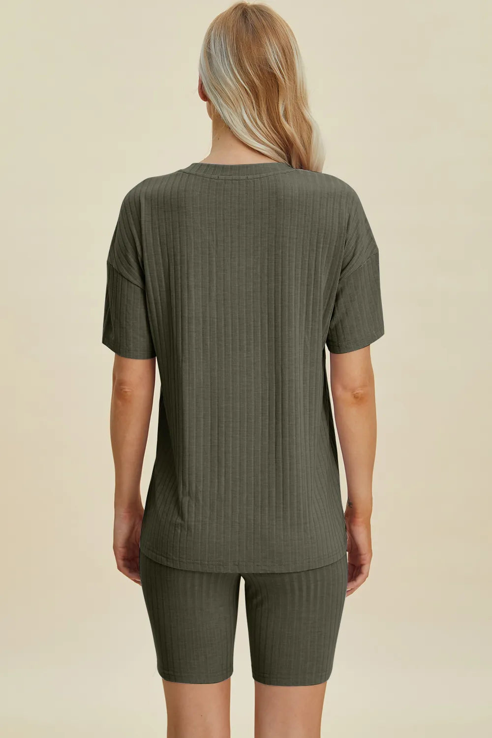 Basic Bae Full Size Ribbed V-Neck Short Sleeve Top and Shorts Set