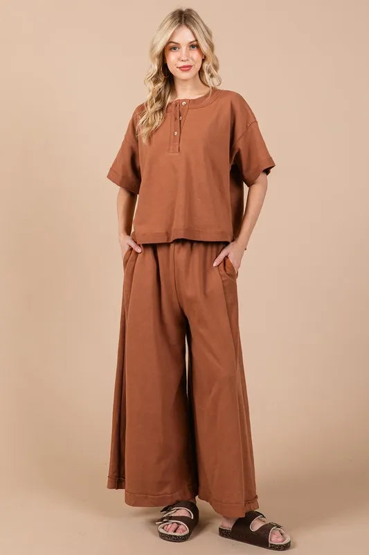 Ces Femme Half Button Half Sleeve Top and Pants Set
