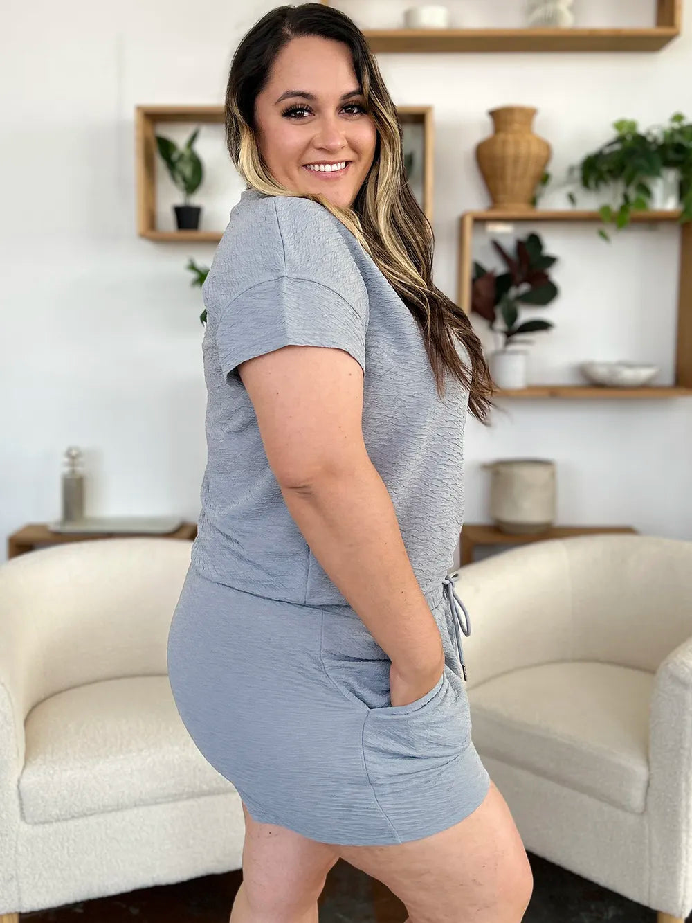 Double Take Full Size Texture Short Sleeve T-Shirt and Drawstring Shorts Set