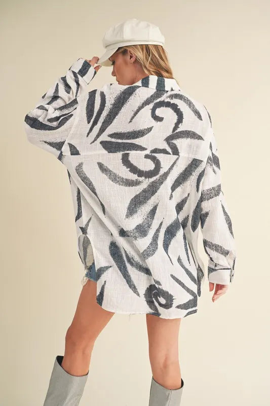 Aemi + Co High-Low Printed Button Up Long Sleeve Shirt