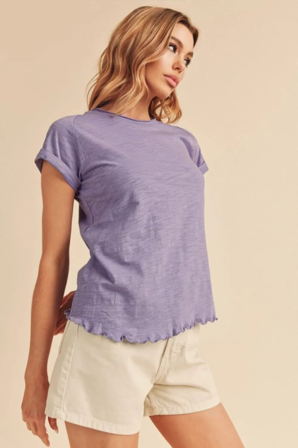 Aemi + Co Lettuce Edge Round Neck Short Sleeve T-Shirt