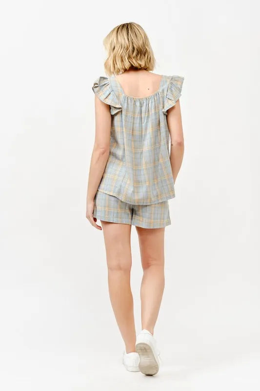 And The Why Plaid Print Smocked Detail Casual Shorts