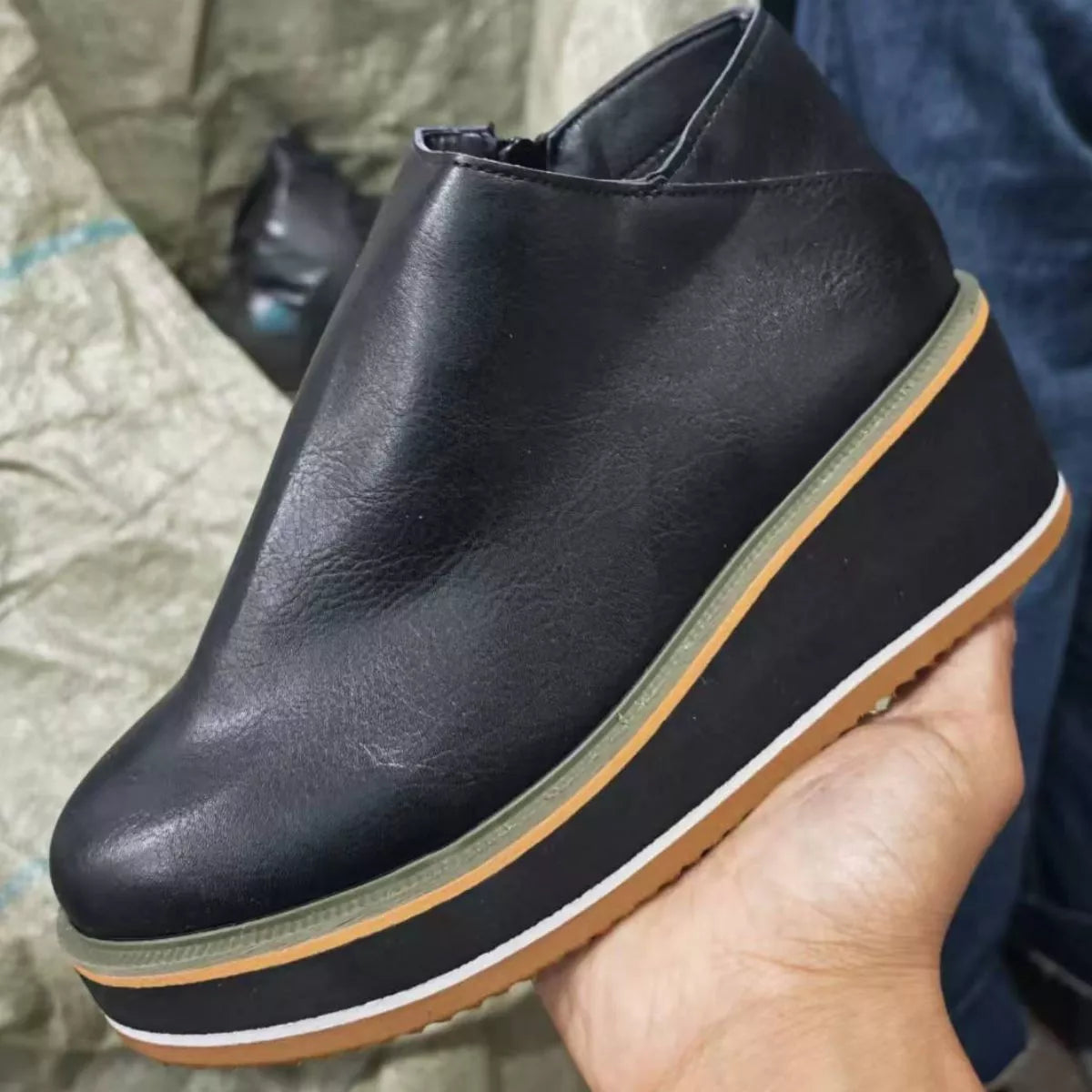 Ankle Wedge Boots with Zipper