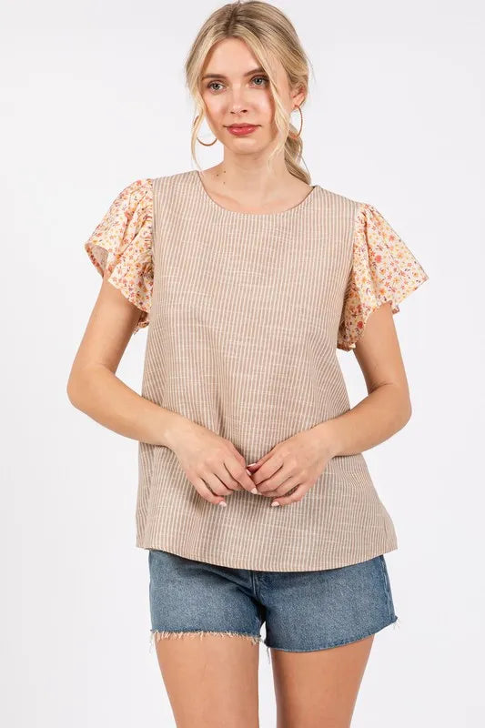 The Round Neck Floral Short Sleeve Top is a charming and versatile wardrobe staple. With its floral print design, classic round neck, and short sleeves, this top exudes a feminine and effortless vibe. Pair it with jeans or shorts for a casual look or dress it up with a skirt for a more polished ensemble. Add a touch of floral flair to your outfit with this stylish and easy-to-wear top.