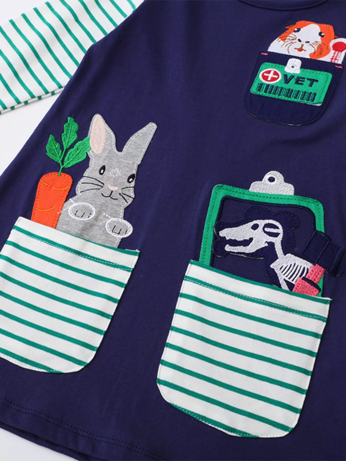 Children's Animal Pocket Embroidered Long Sleeve Dress