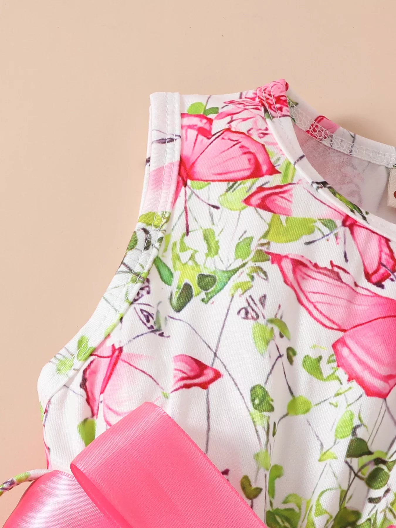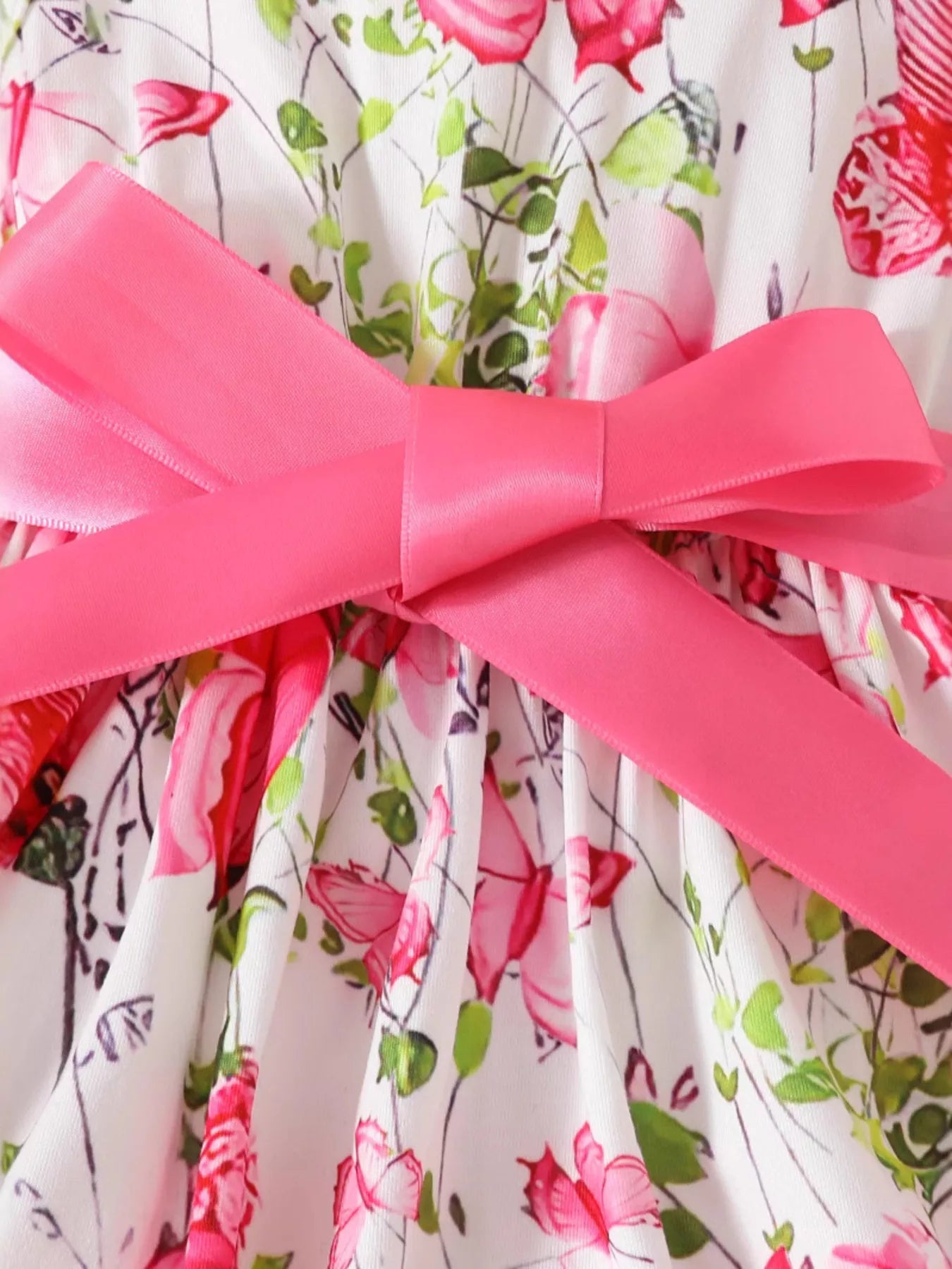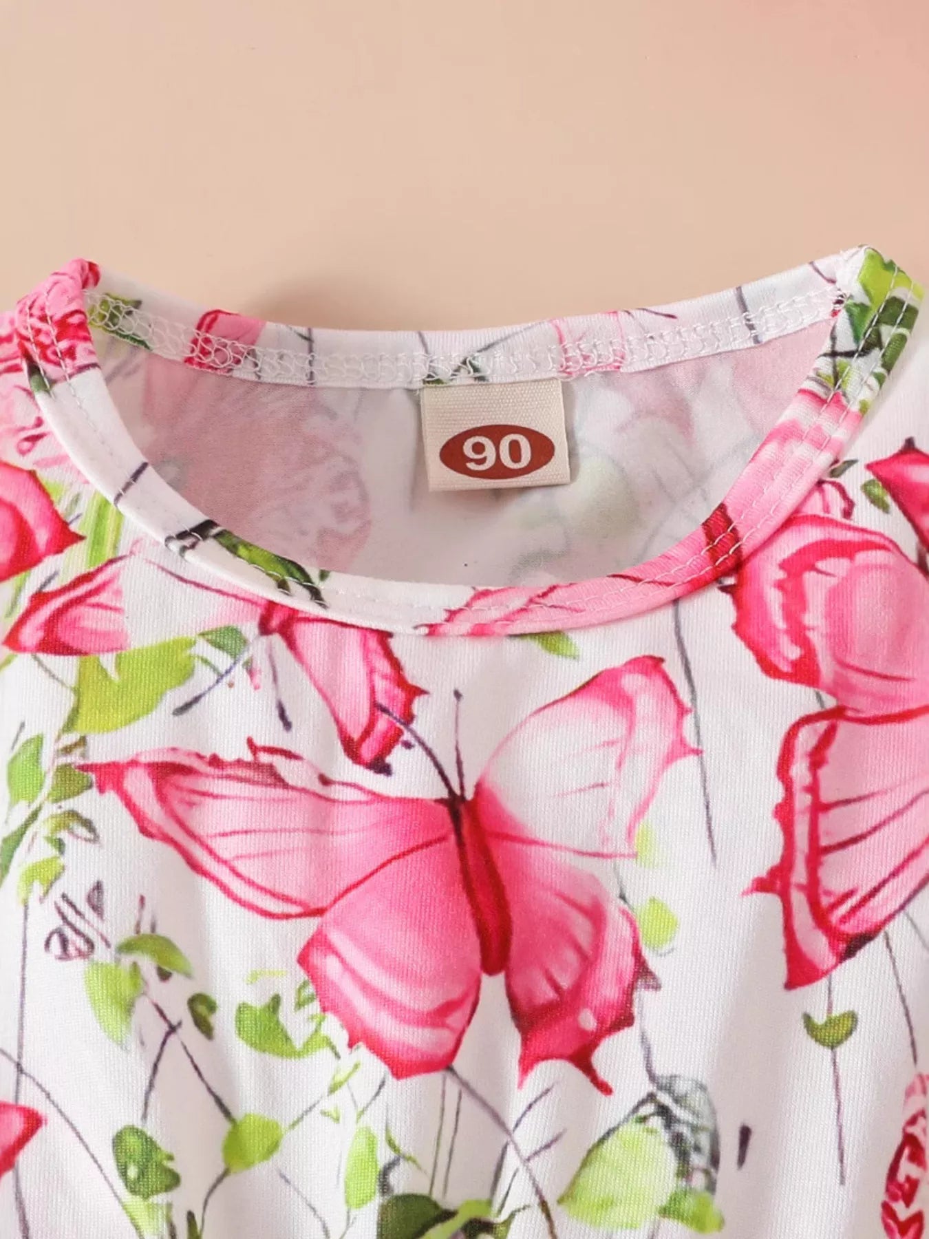 Children's Butterfly Print Sleeveless Dress with Cardigan Set