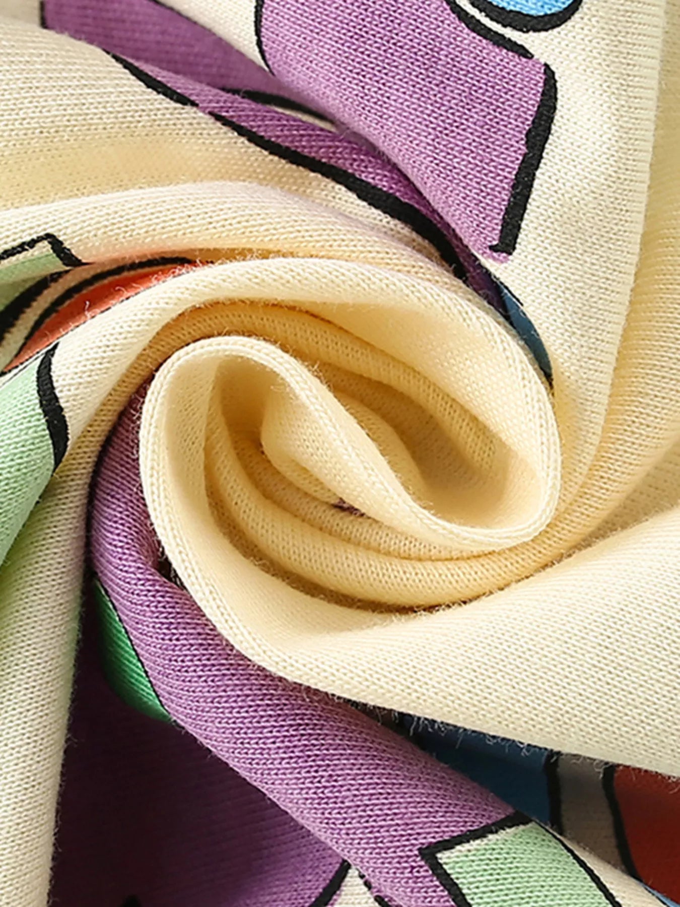 Children's Cartoon Car & Rainbow Print Short Sleeve T-Shirt