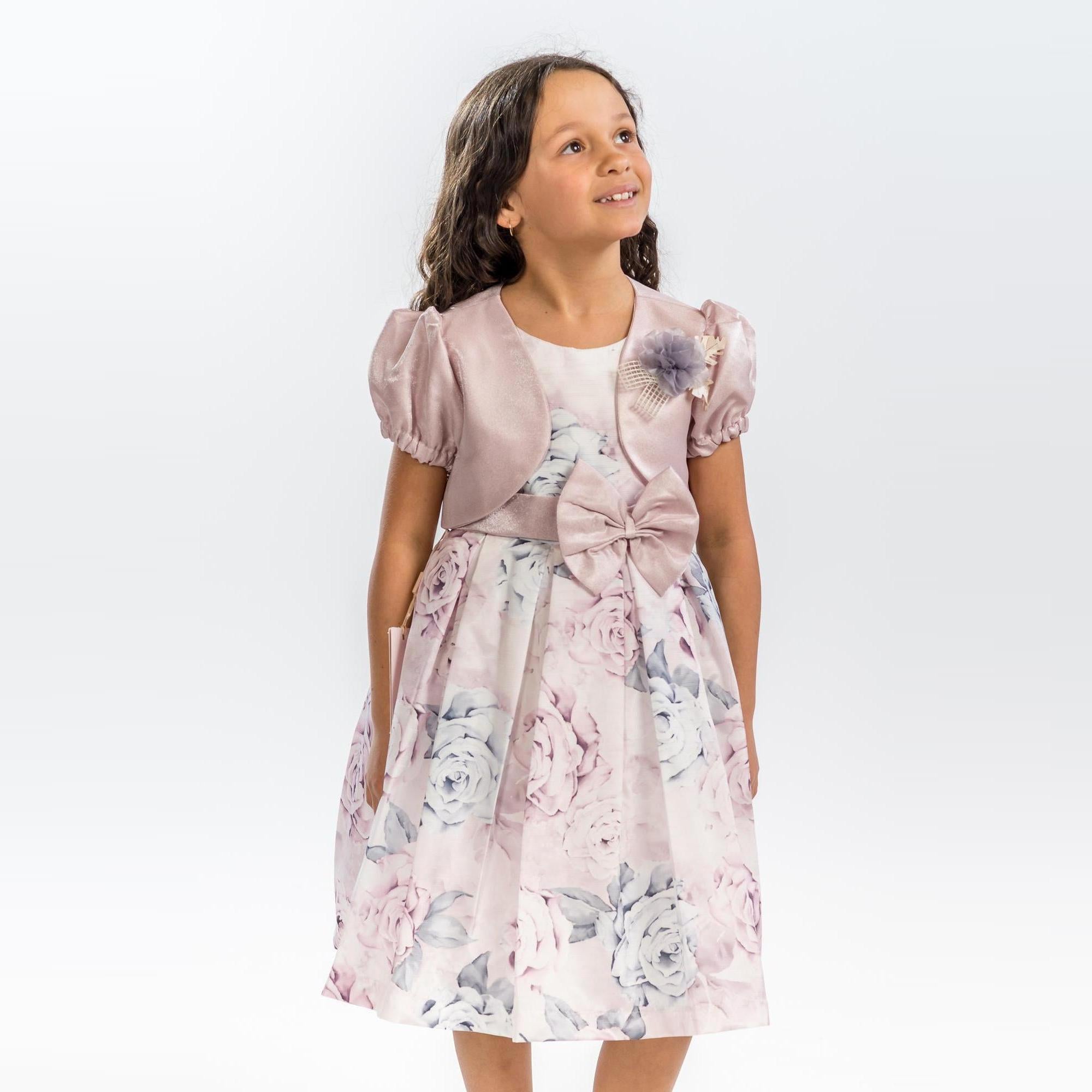Beautiful and original short floral pattern dress and matching pouffy-sleeves bolero will make your little girl shine for any occasion. An exclusive JuniorKids dress!