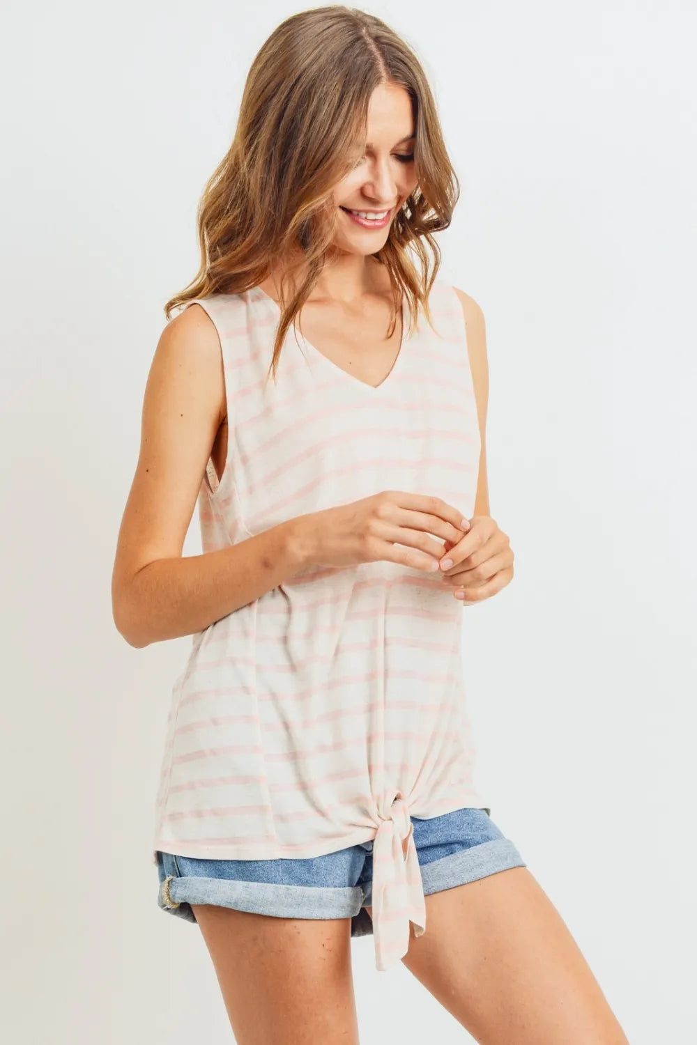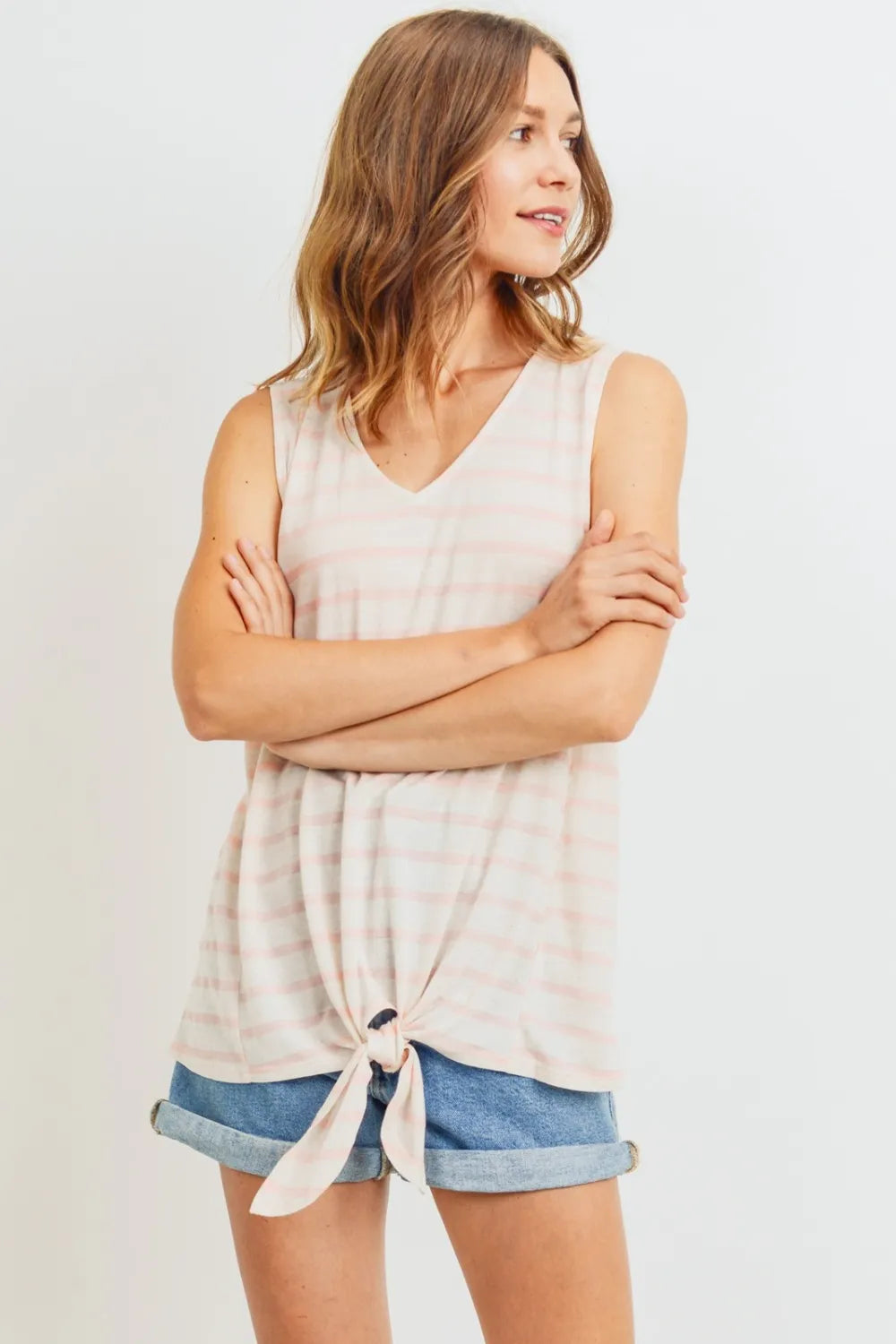 Cotton Bleu by Nu Label Sleeveless Front Tie Striped Top