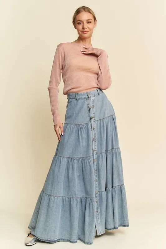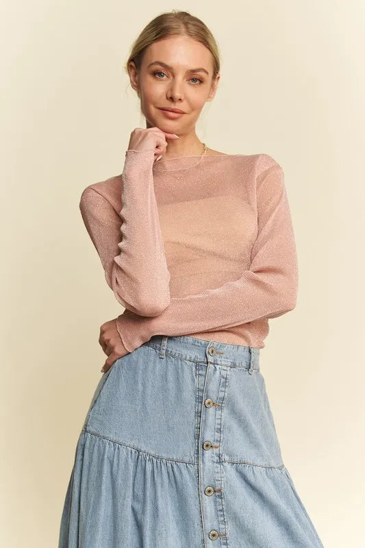 Davi & Dani Glitter Mesh Lettuce Hem Long Sleeve Top