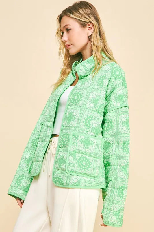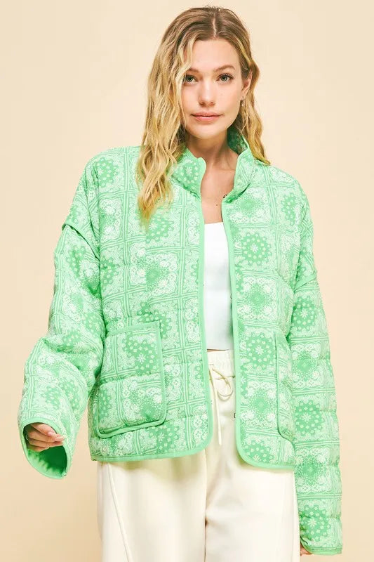 A vintage print open front jacket with pockets is a stylish and versatile layering piece that adds a retro touch to your outfit. The vintage print adds a unique and nostalgic flair to the jacket, while the open front design allows for easy and casual wear. The presence of pockets adds both functionality and a laid-back vibe to the jacket. A vintage print open front jacket with pockets is a great addition to your wardrobe for adding a touch of retro charm to your outfits while also providing practicality and style.