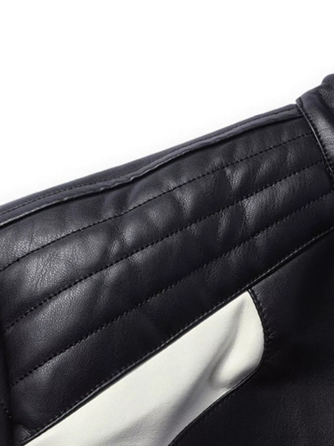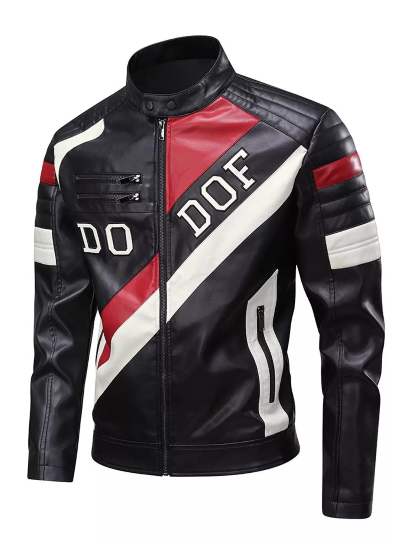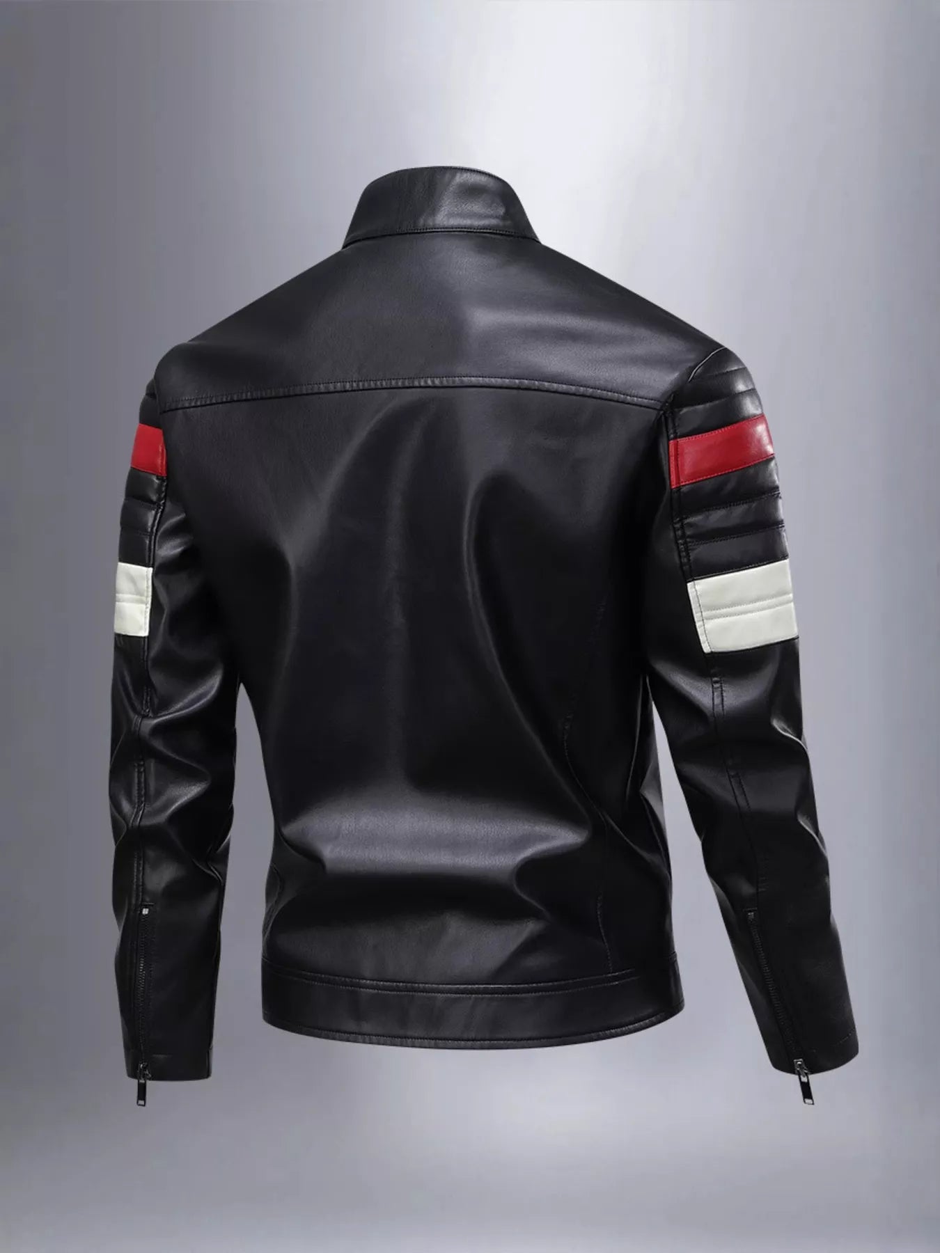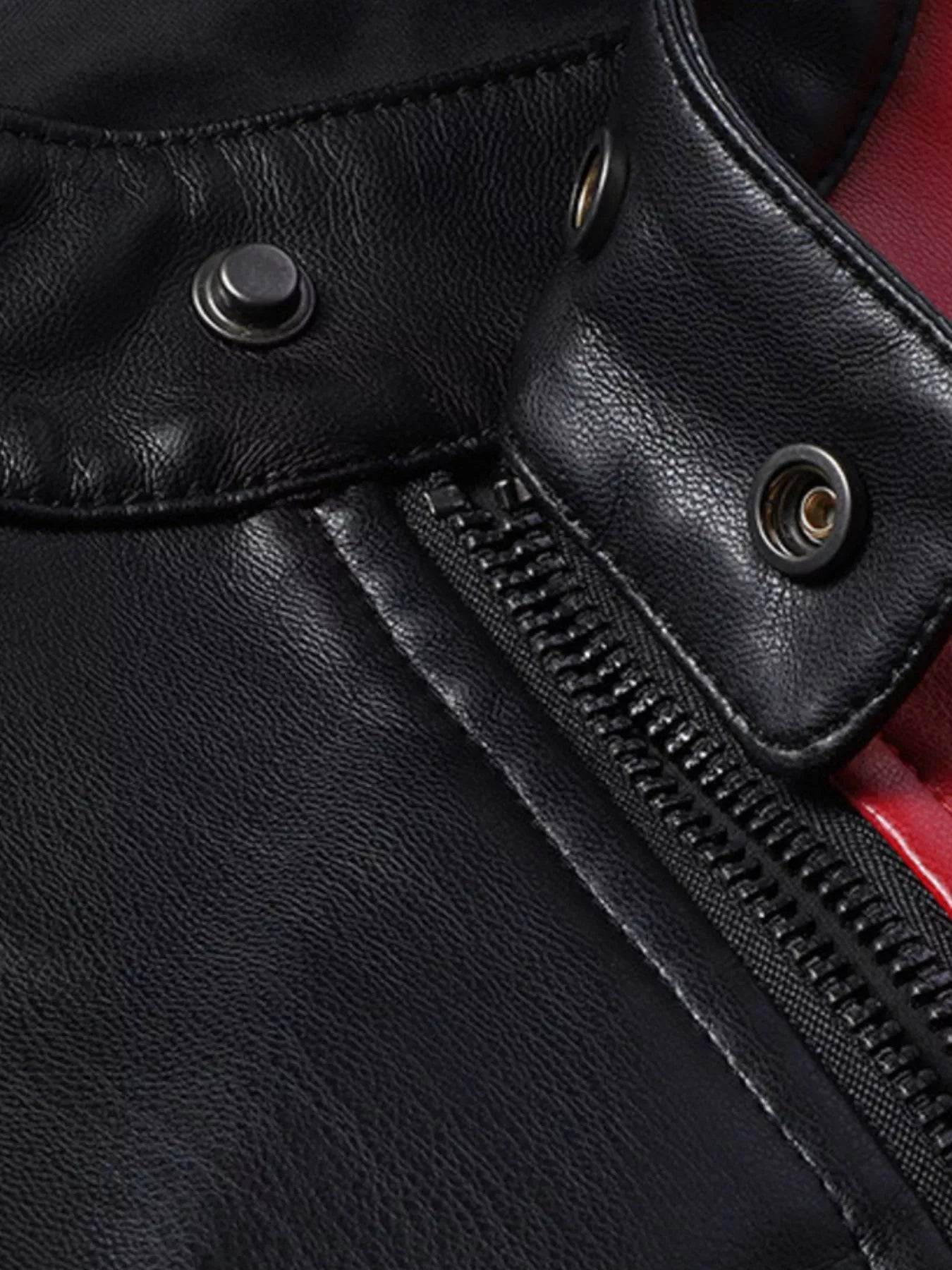 Men's Full Size Color Block Motorcycle Leather Jacket Plus Size