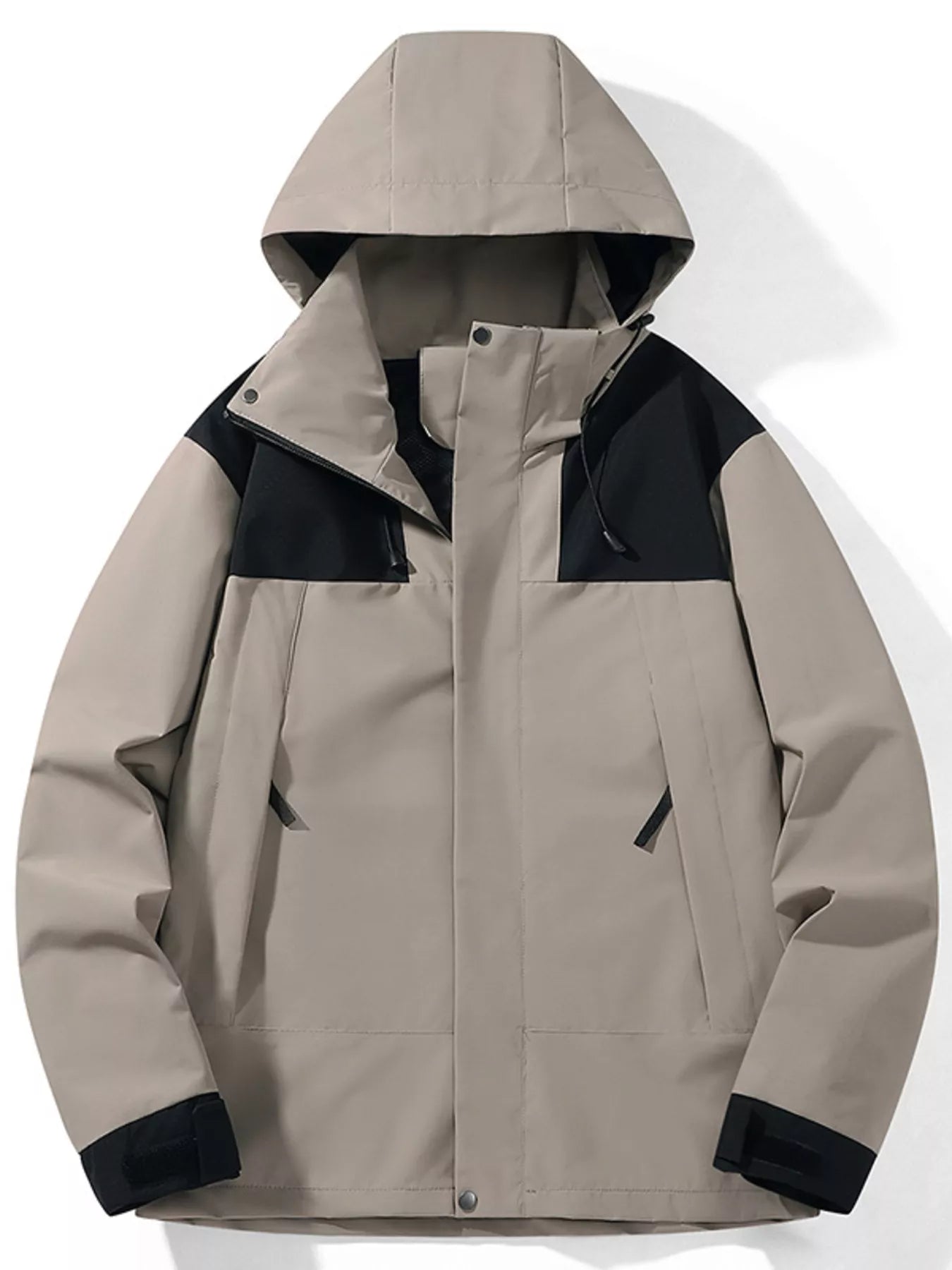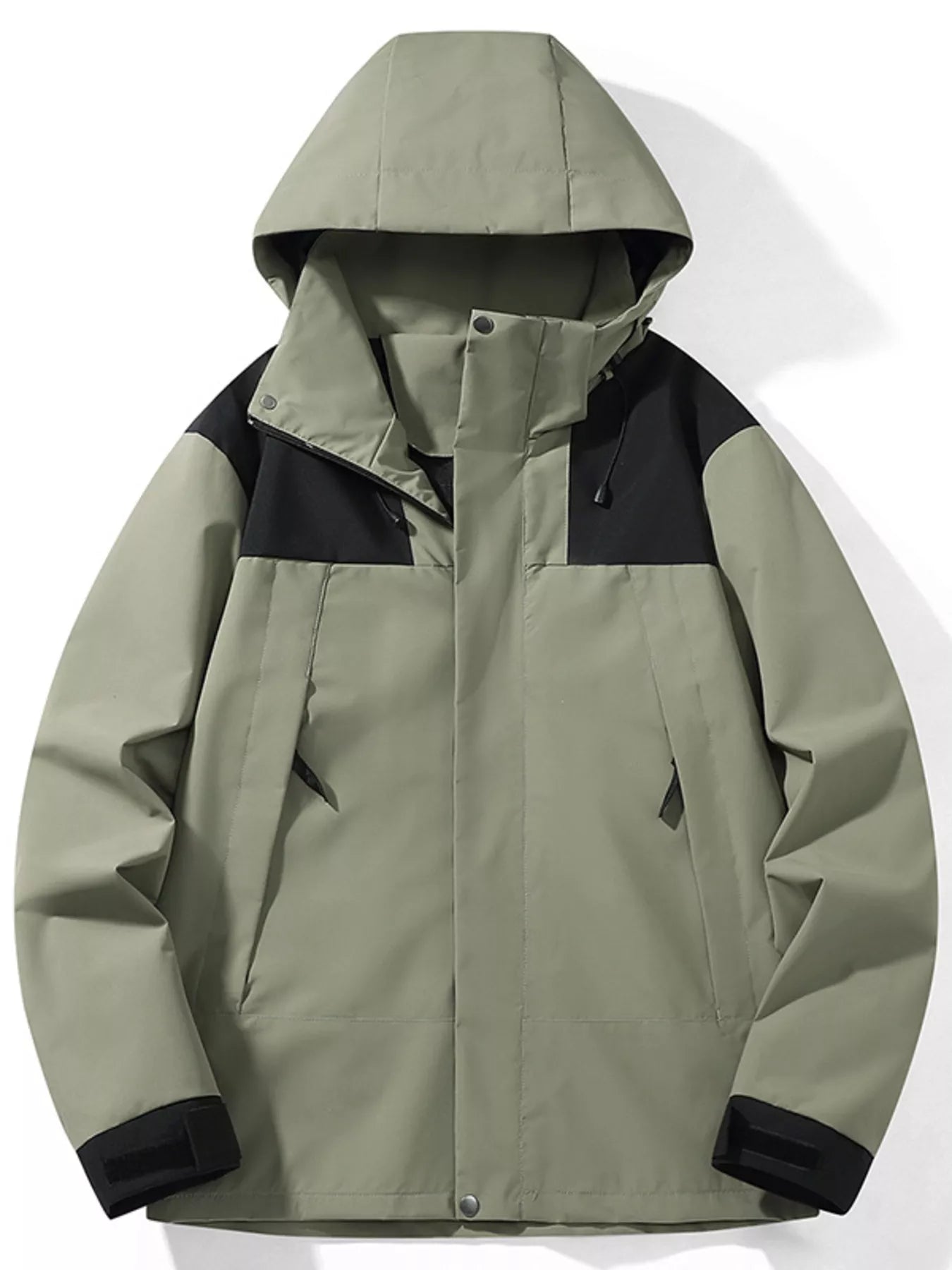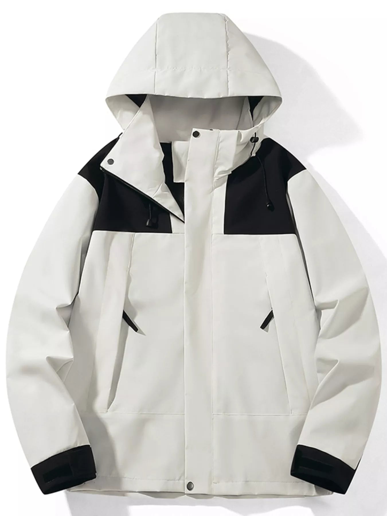Men's Full Size Color Block Windproof Hooded Jacket Plus Size