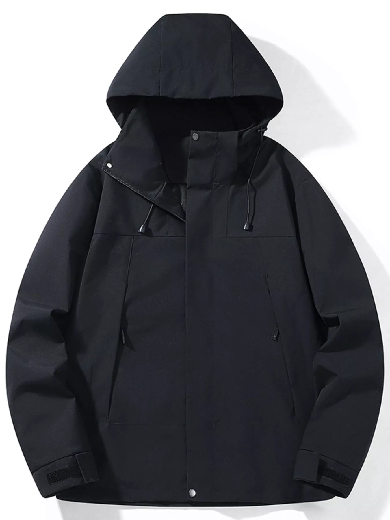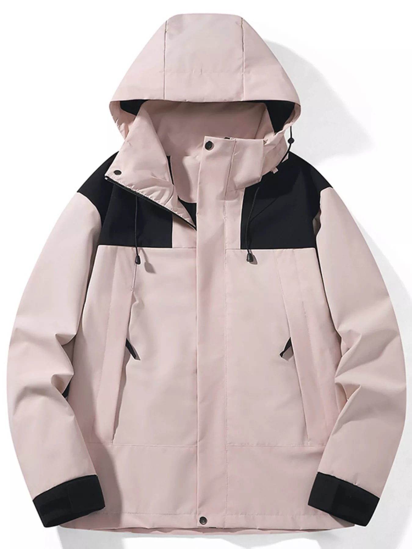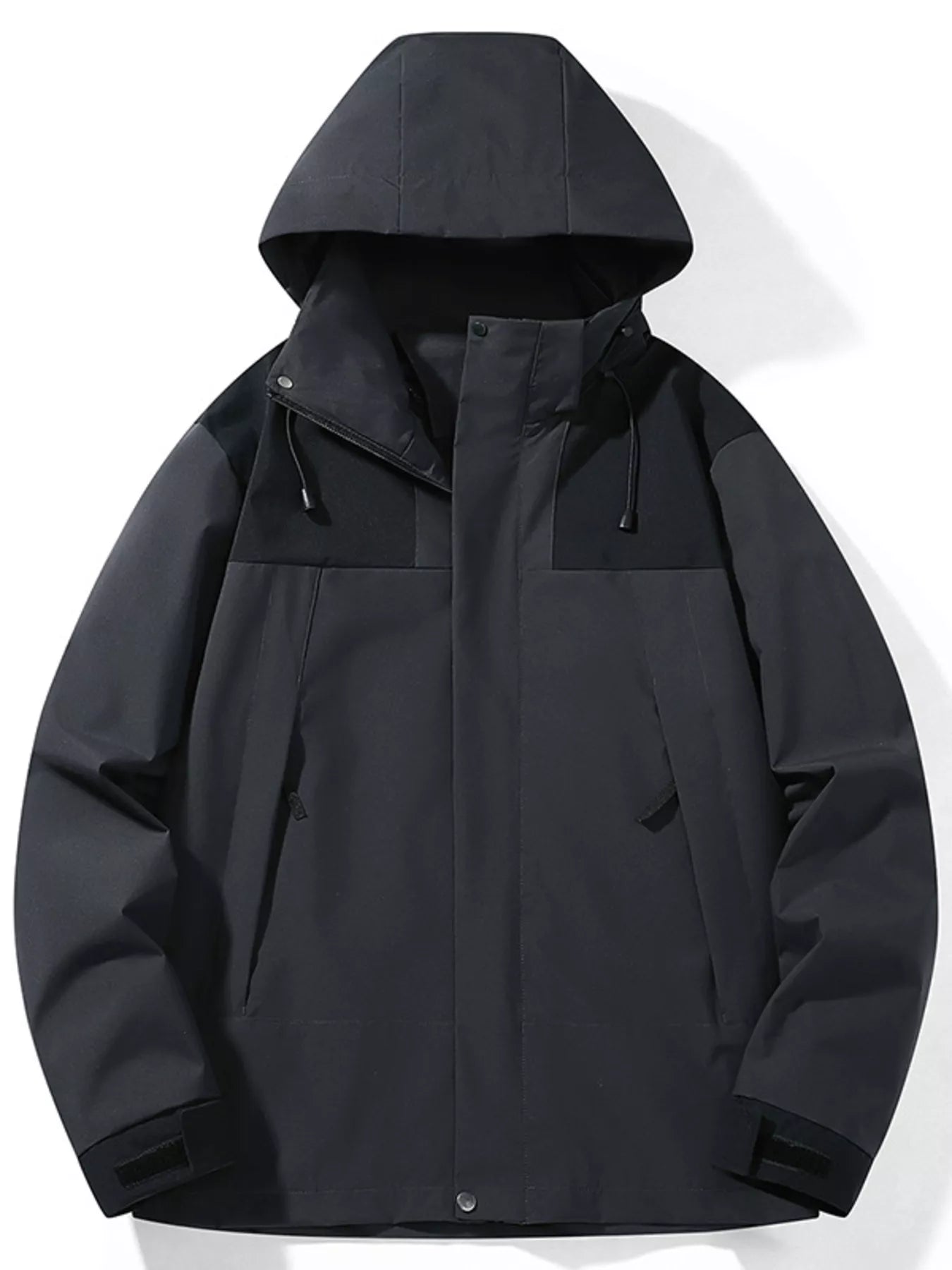 Men's Full Size Color Block Windproof Hooded Jacket Plus Size