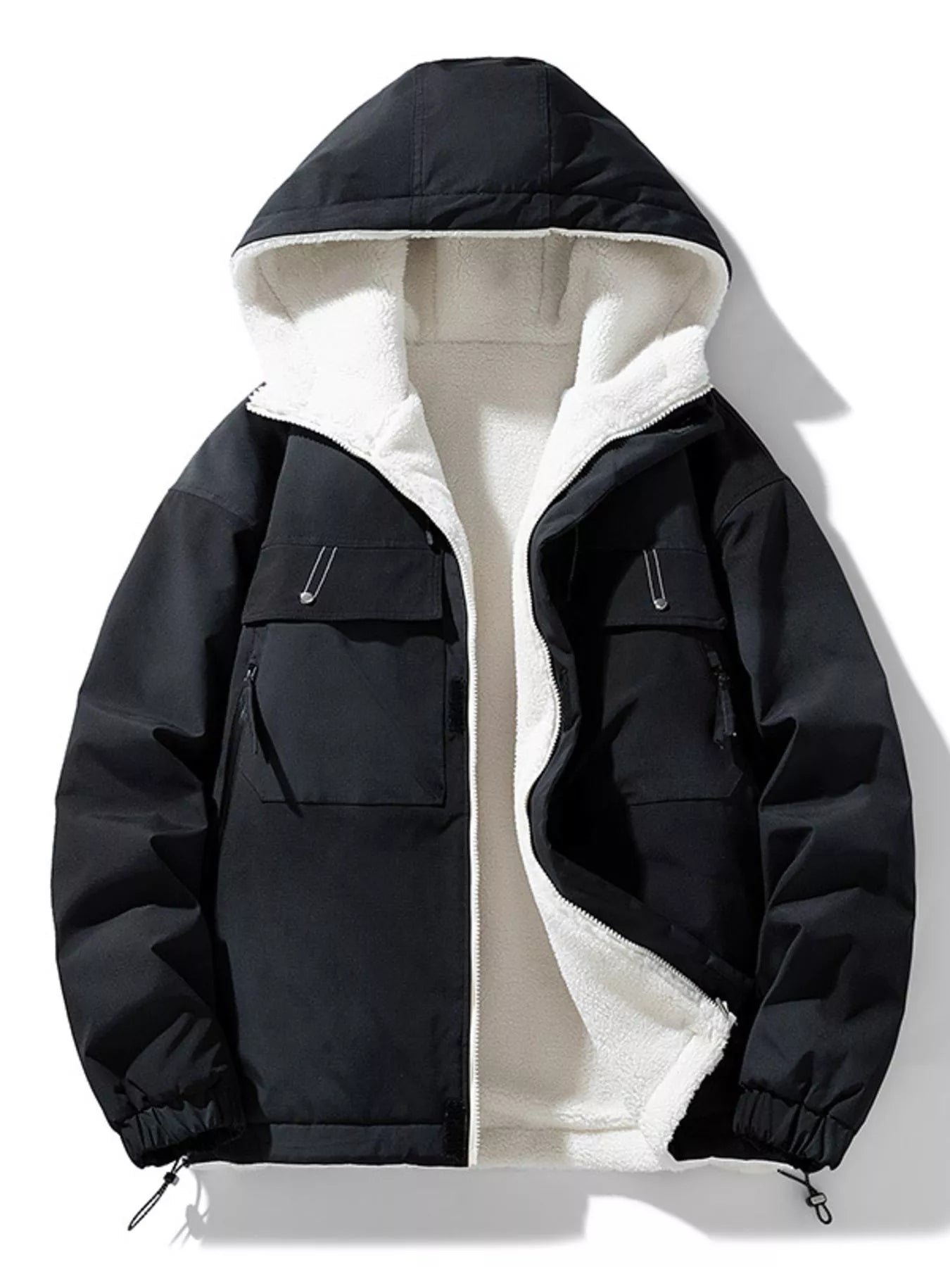 Men's Full Size Hooded Fleece Lined Windproof Jacket Plus Size