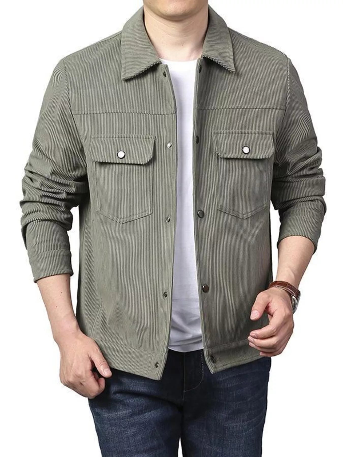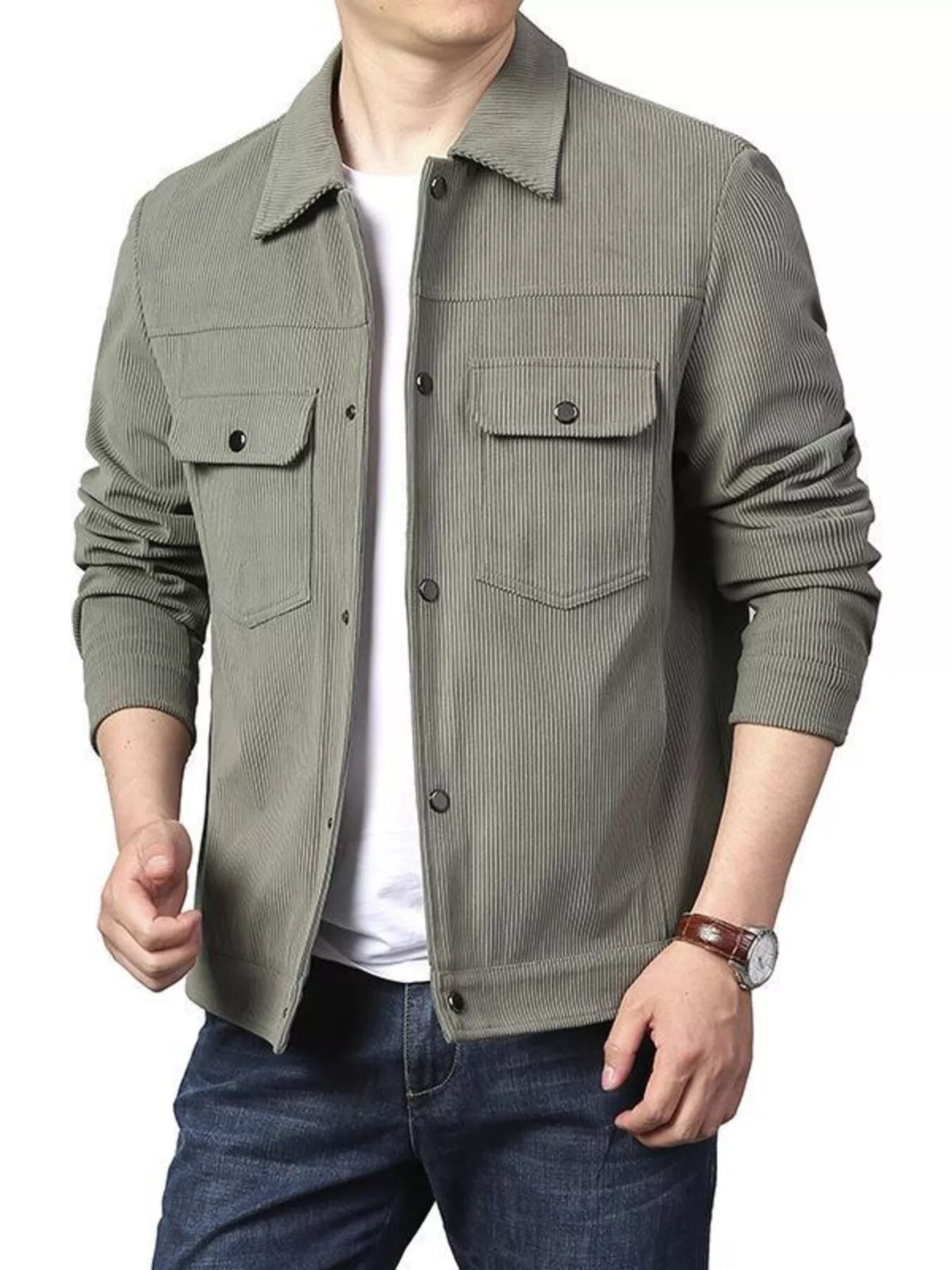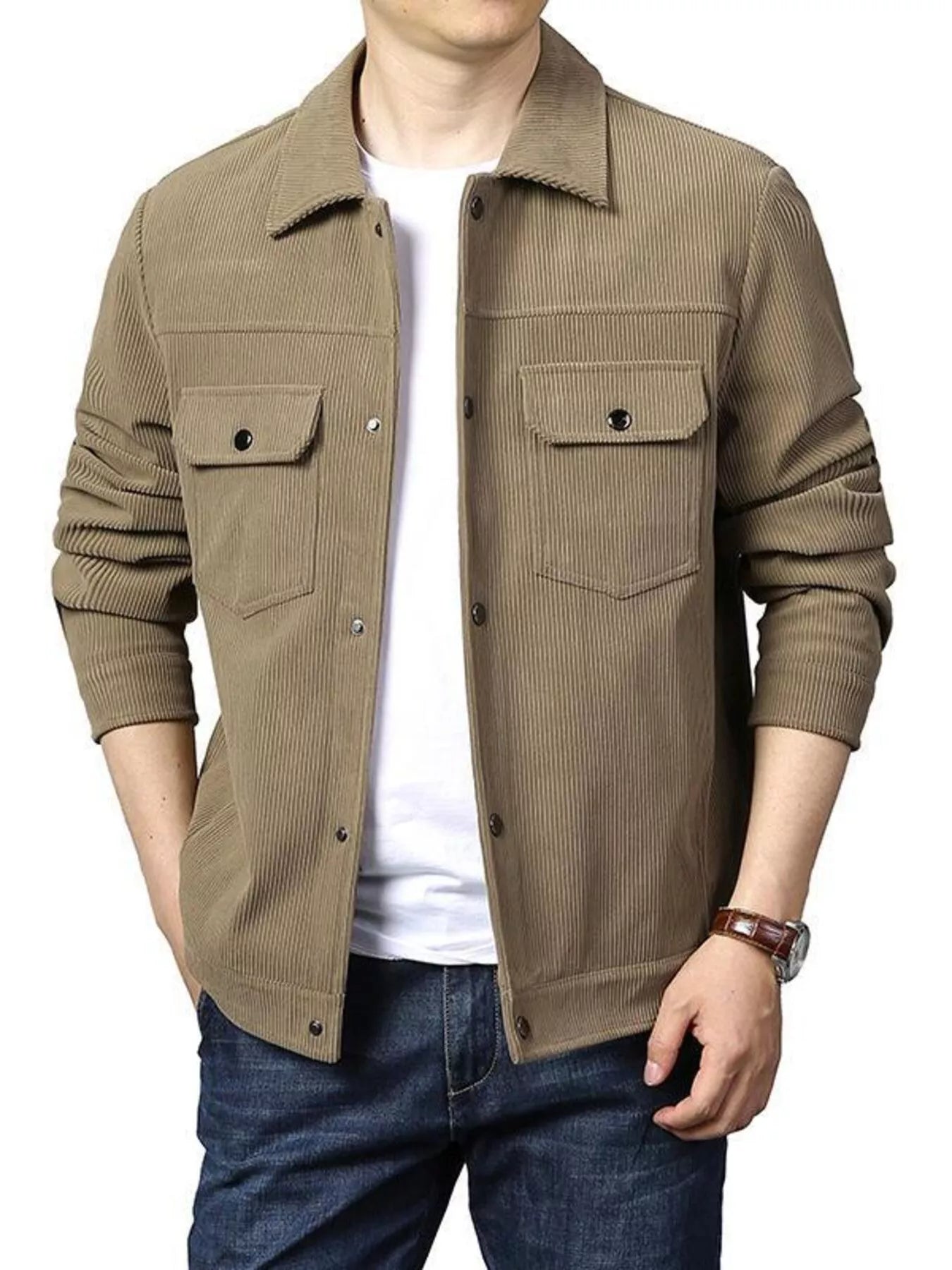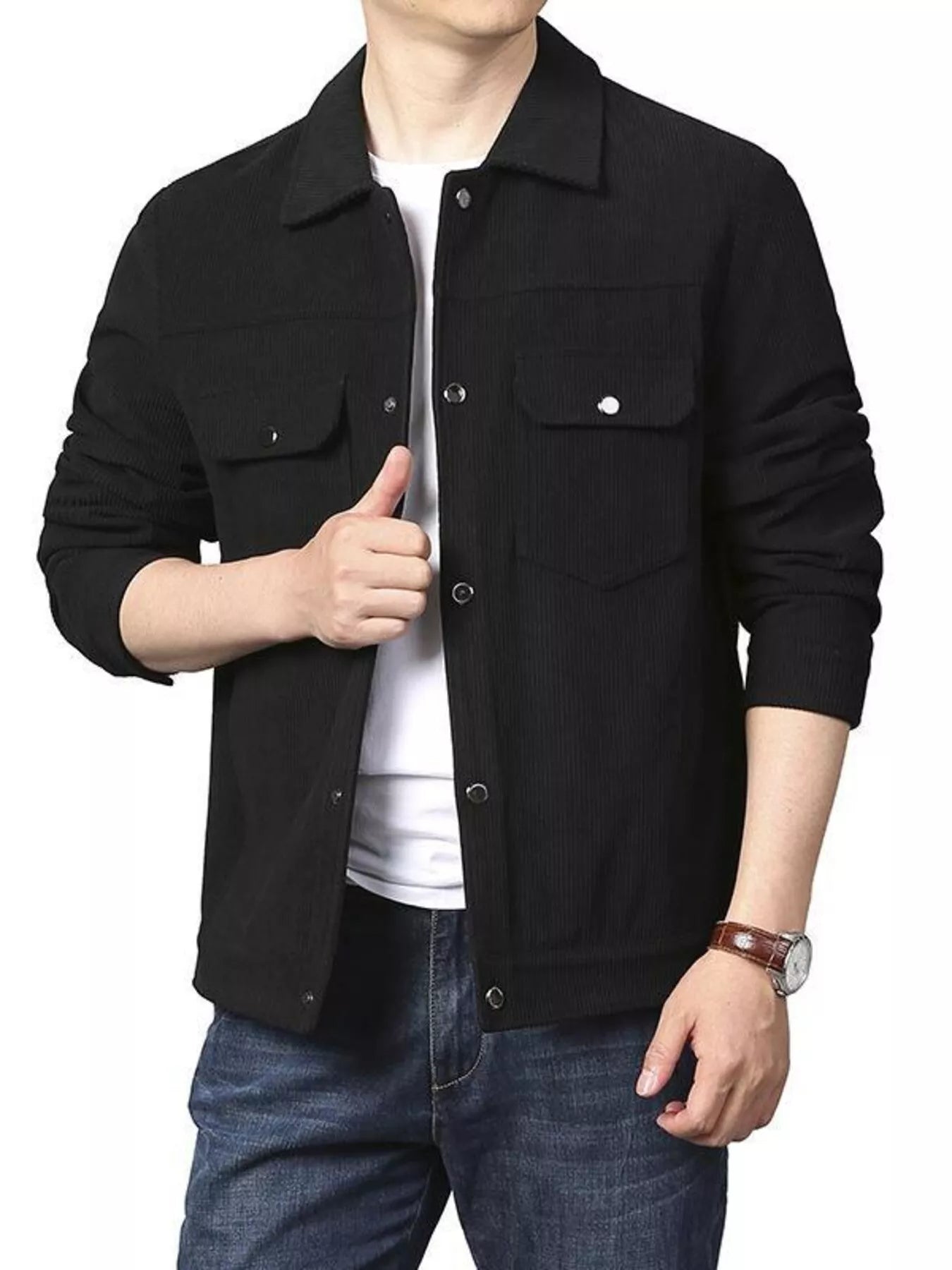 Men's Plus Size Casual Corduroy Snap-Down Jacket