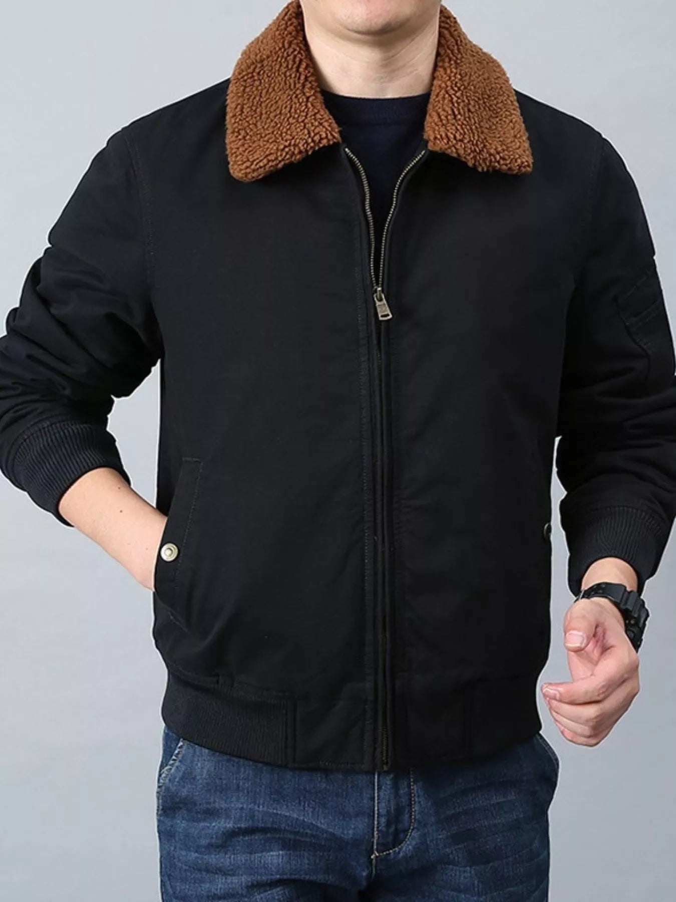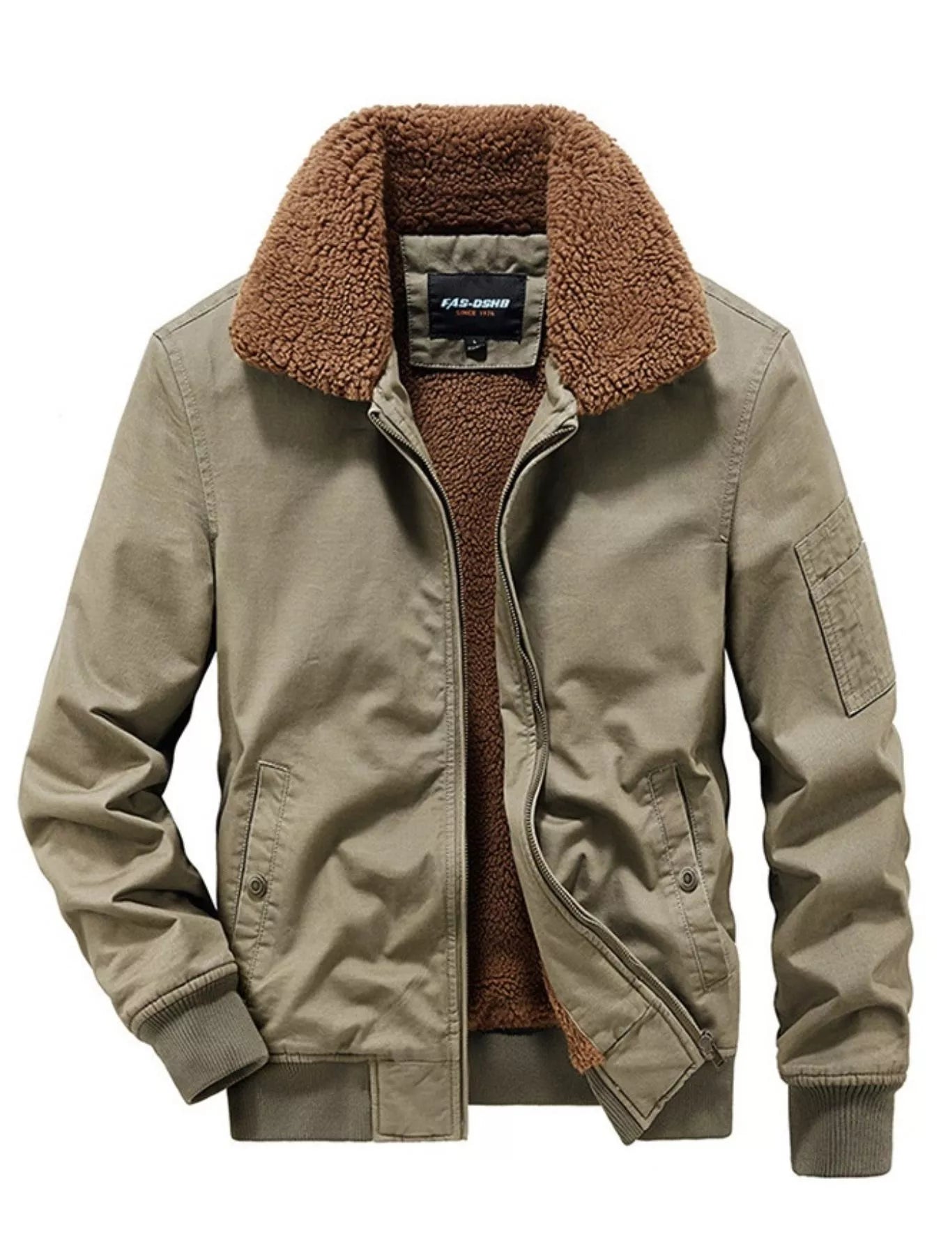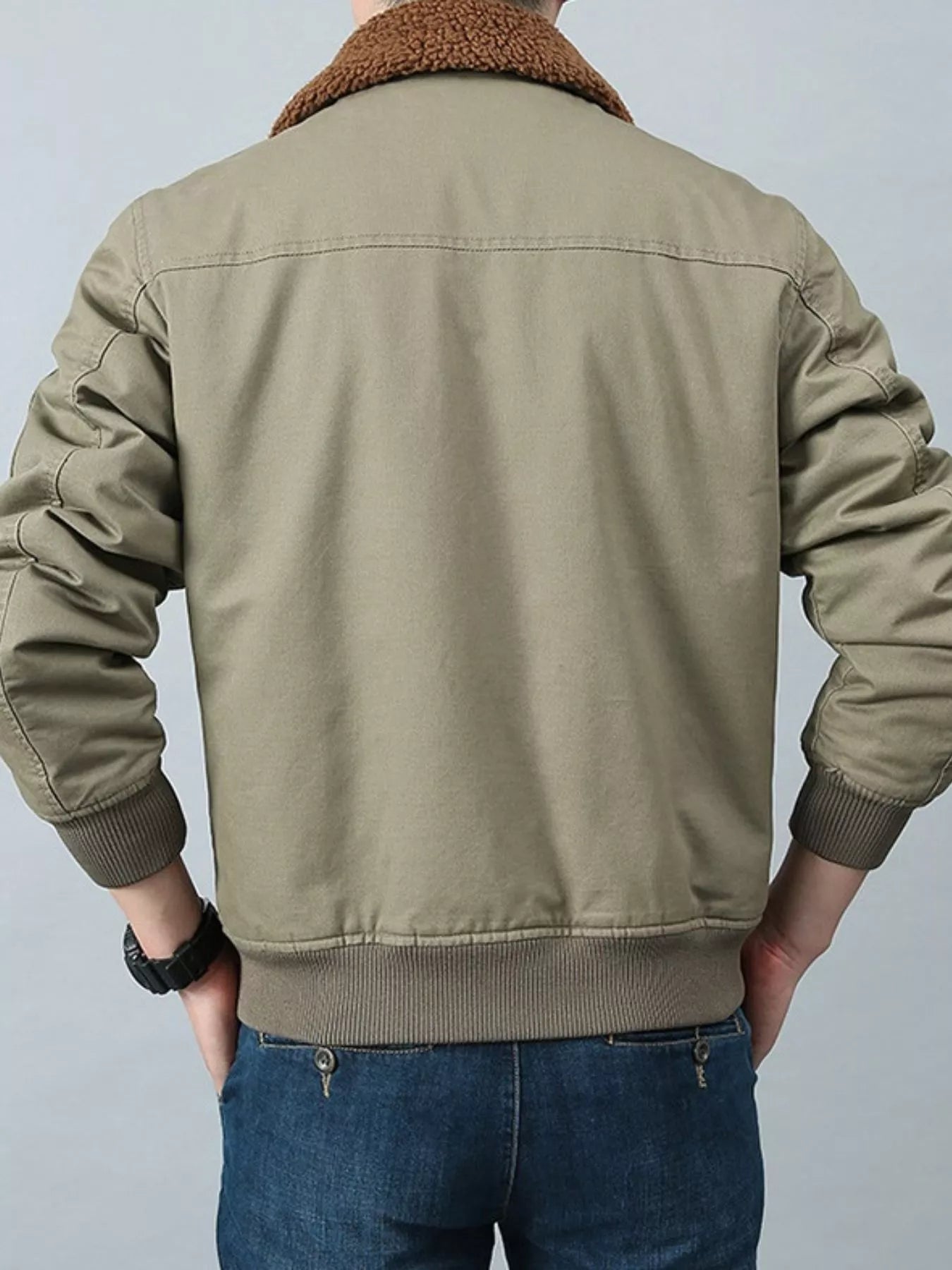 Men's Plus Size Casual Fleece Collar Zip Up Jacket