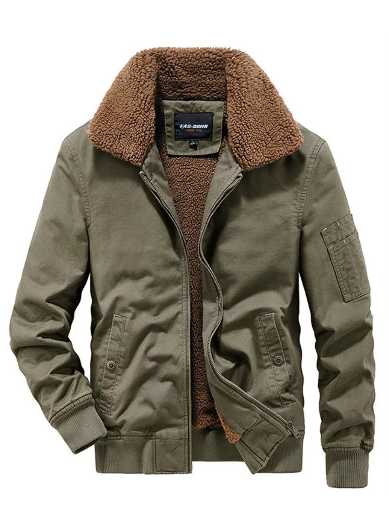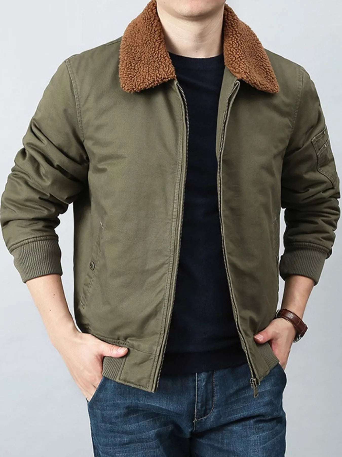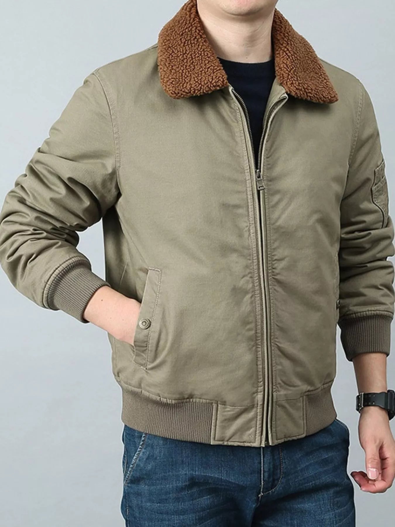 Men's Plus Size Casual Fleece Collar Zip Up Jacket