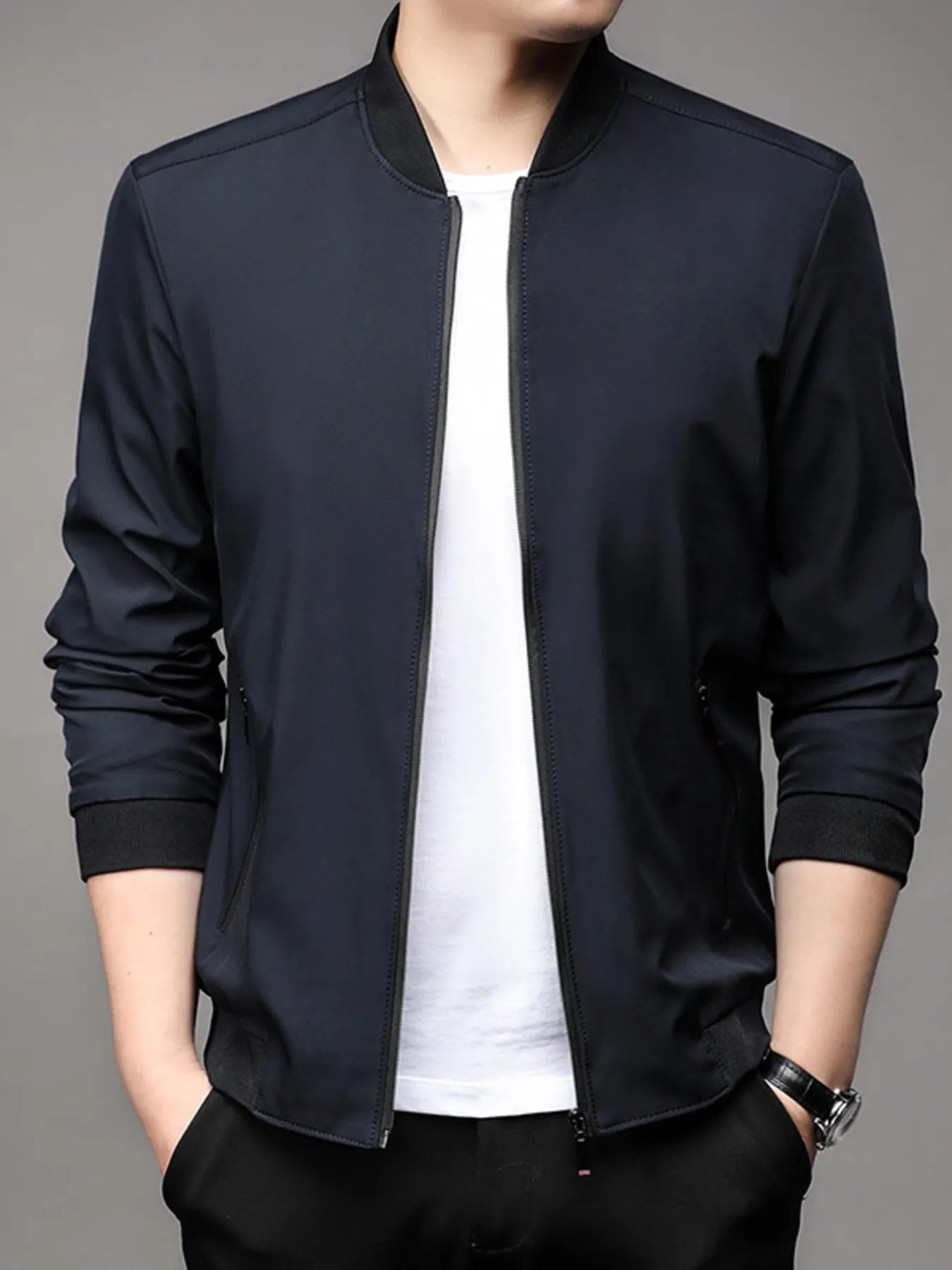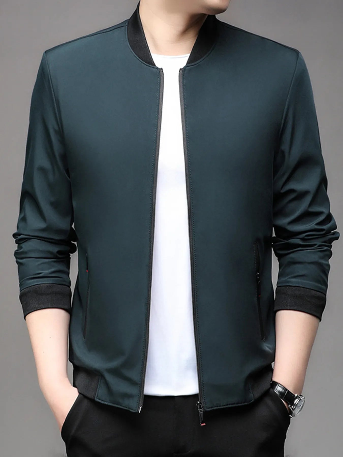 Men's Plus Size Full Zip Front Closure Bomber Jacket with Pockets