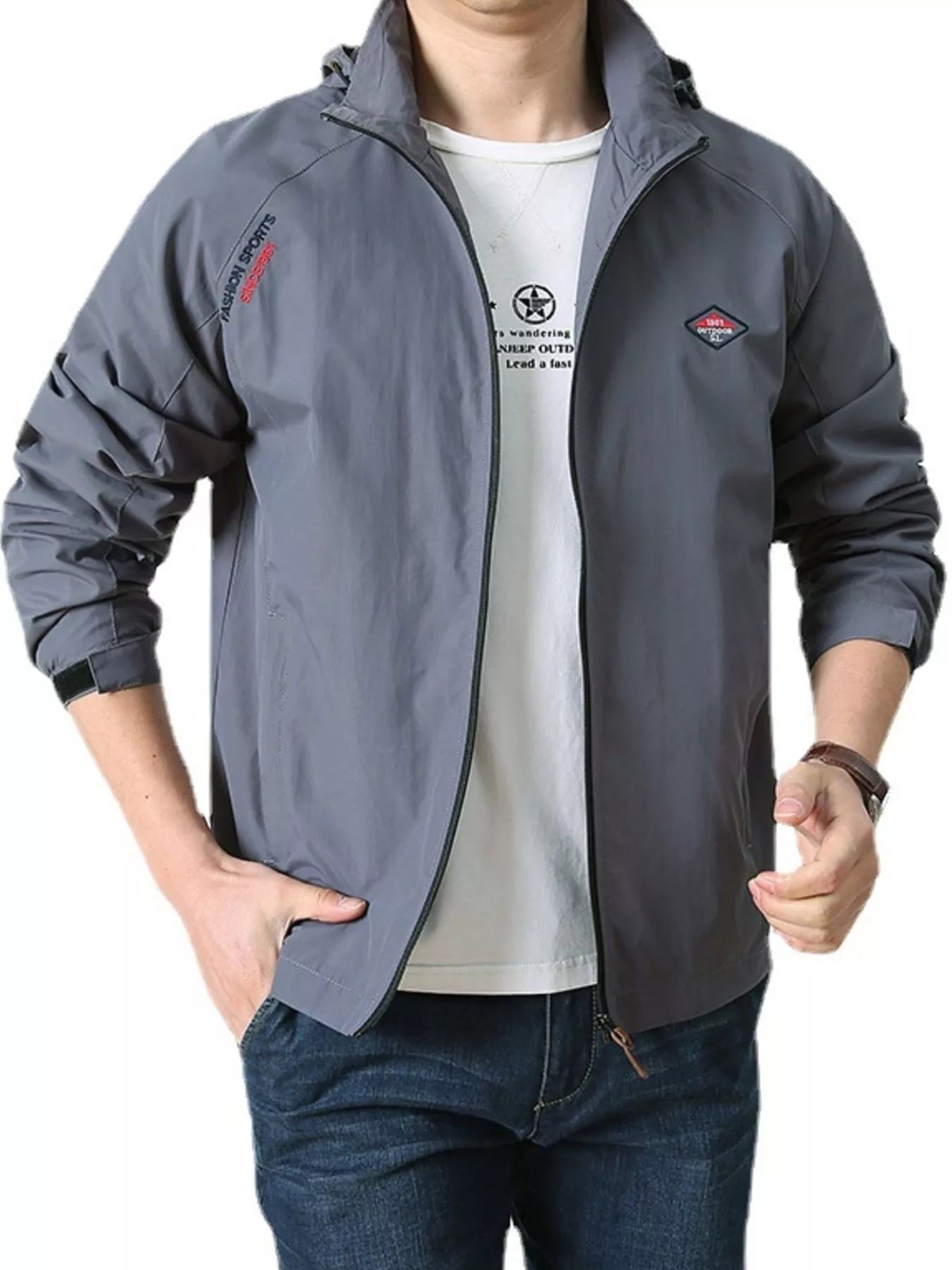 Men's Plus Size Lightweight Hooded Windbreaker Jacket