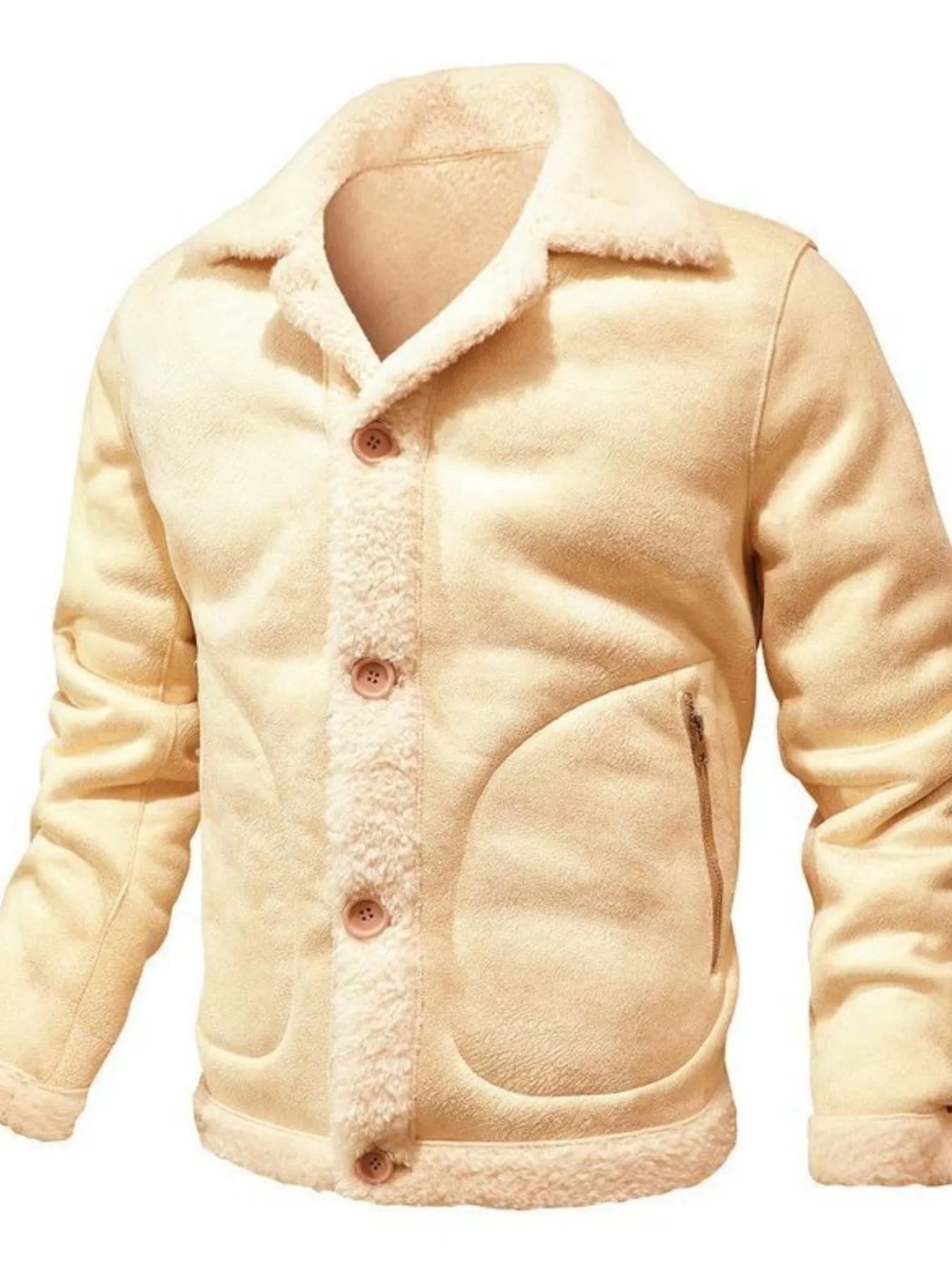 Men's Plus Size Shearling Lined Button Up Jacket