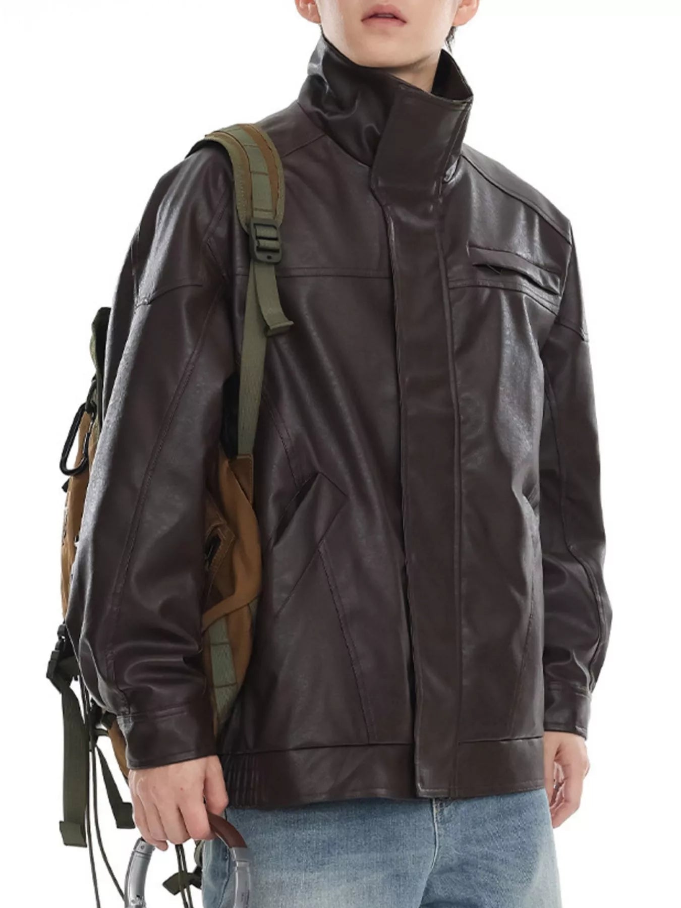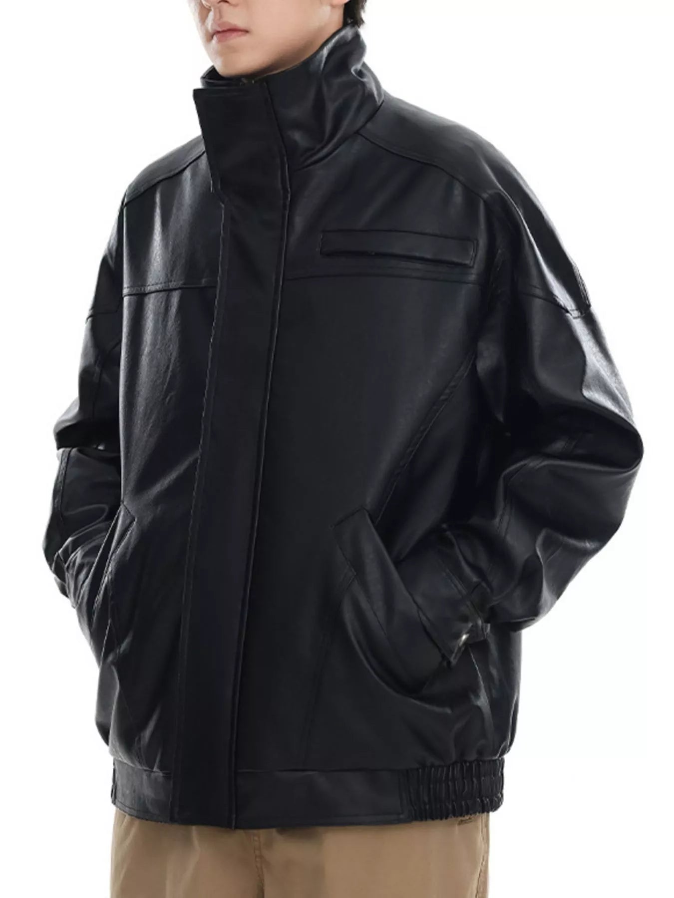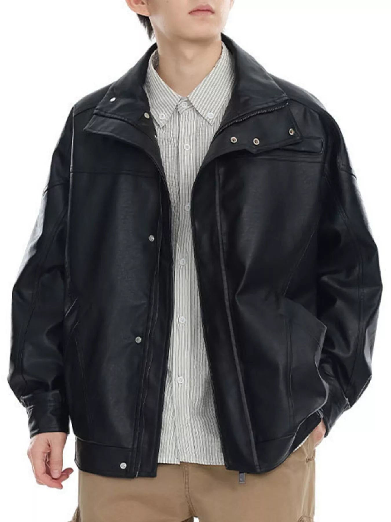 Men's Plus Size Stand Collar Leather Jacket