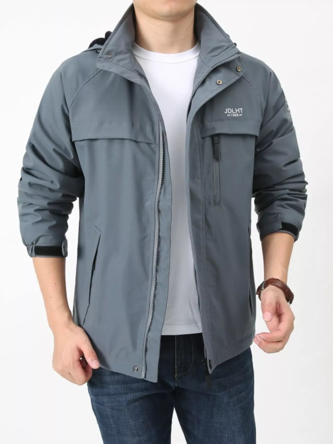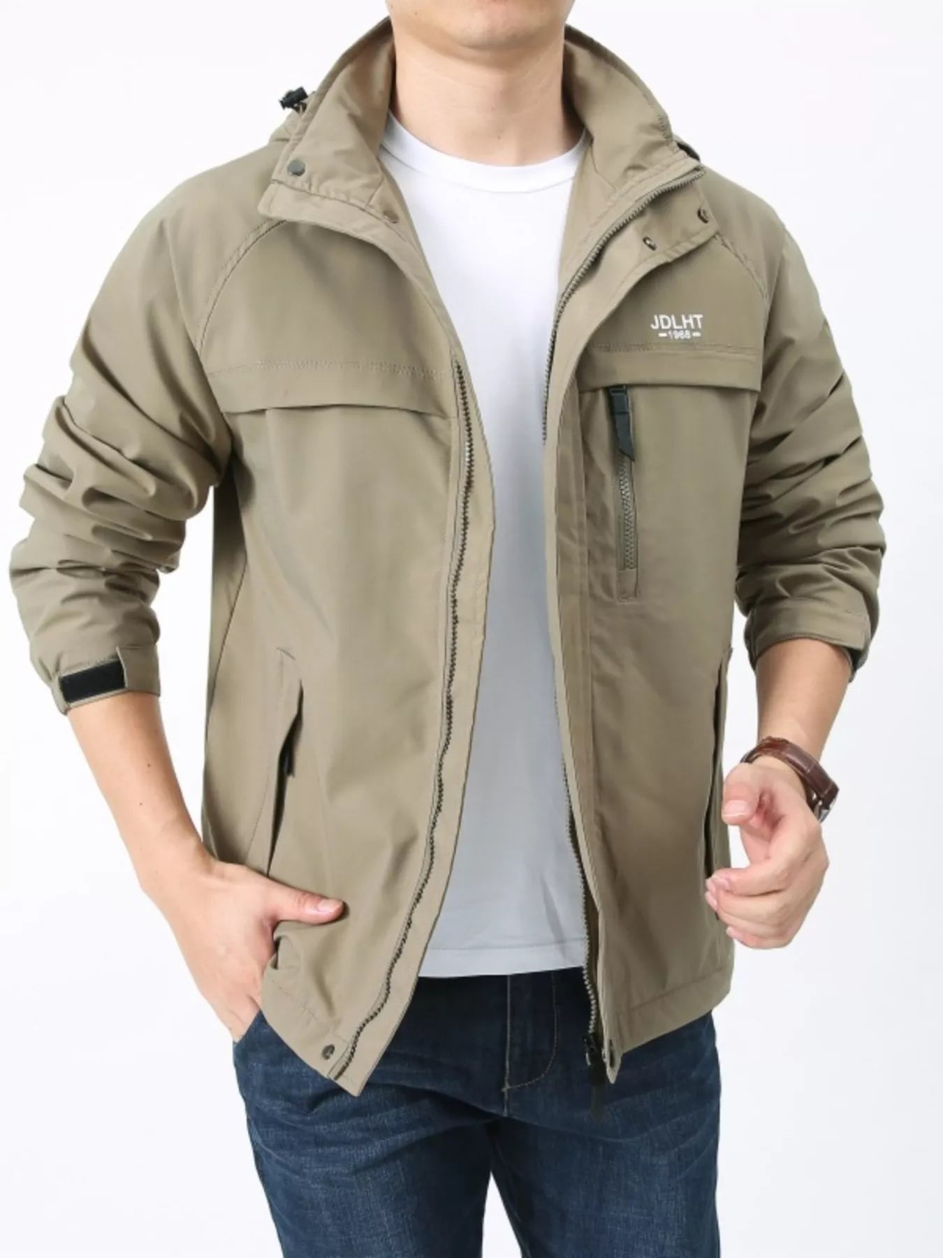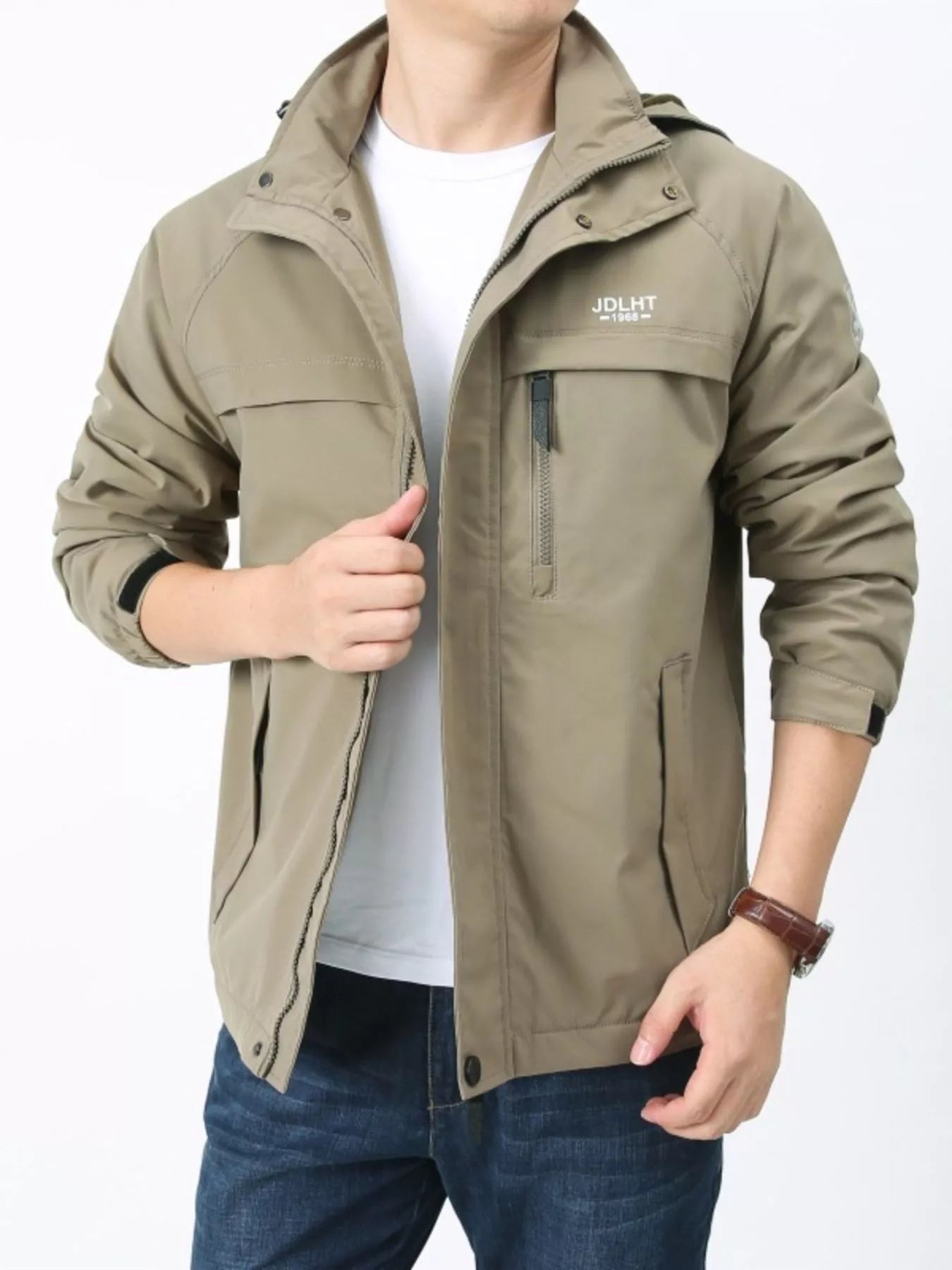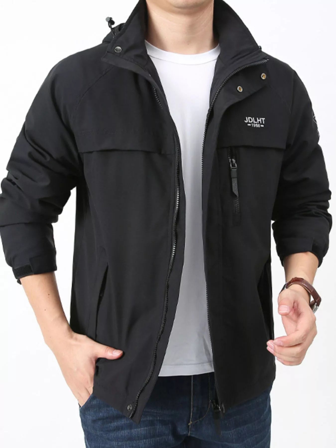 Men's Plus Size Zip Up Windproof Hooded Jacket