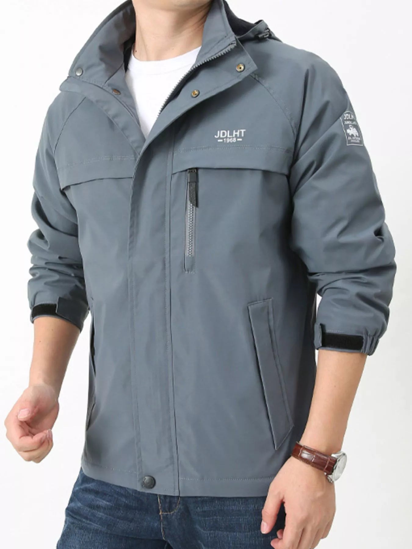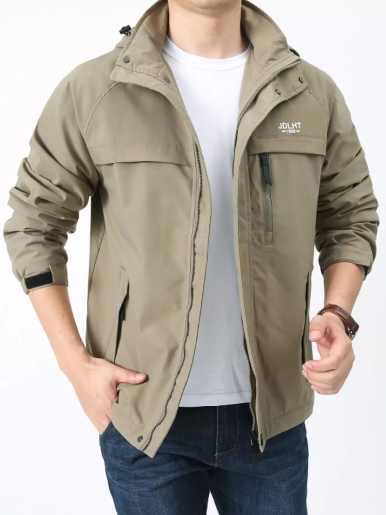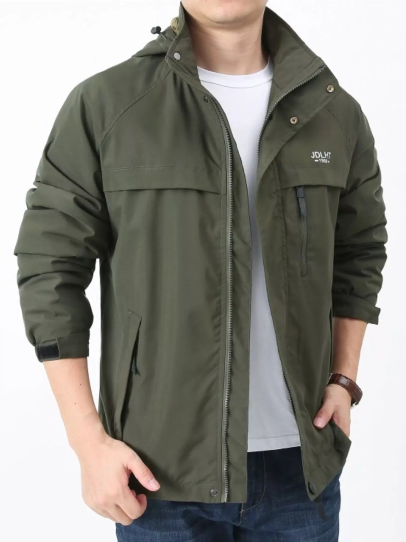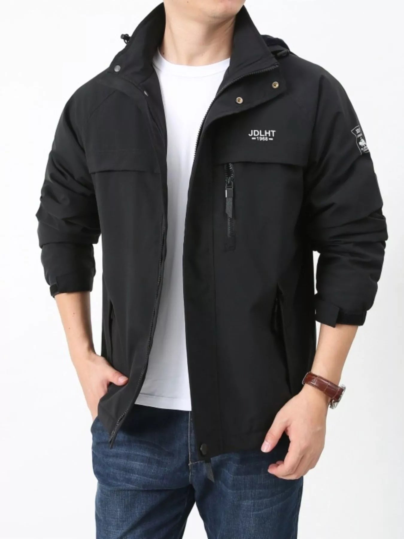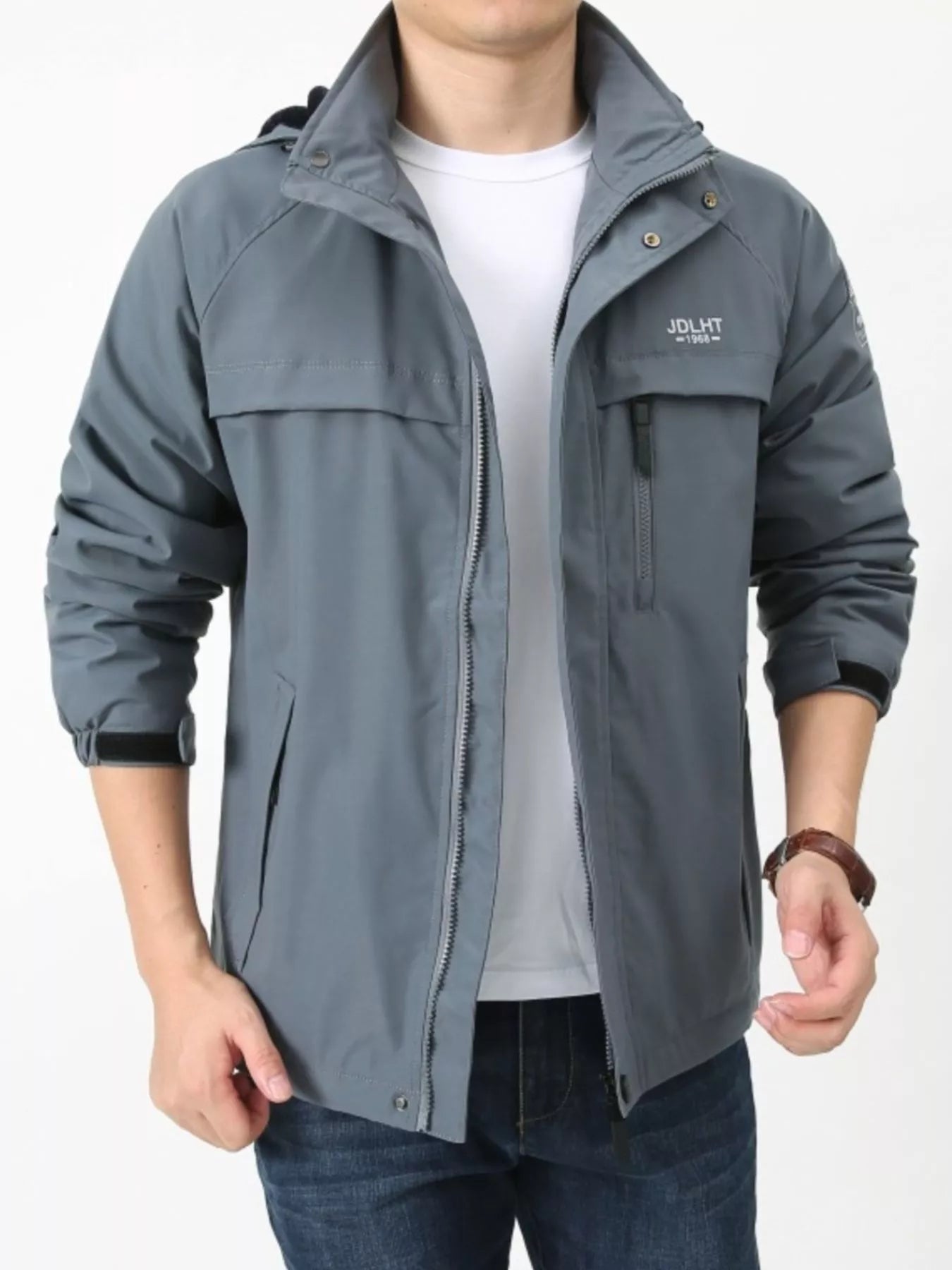 Men's Plus Size Zip Up Windproof Hooded Jacket